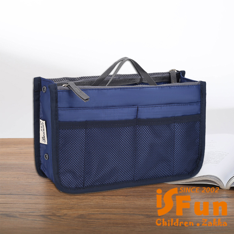 【iSFun】空氣舖棉 防撞包中袋收納包/藏青色