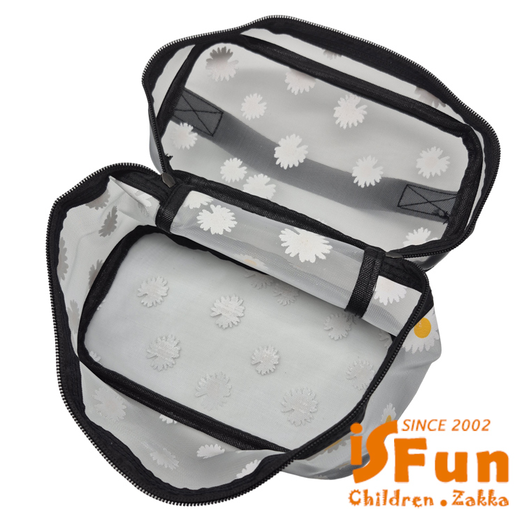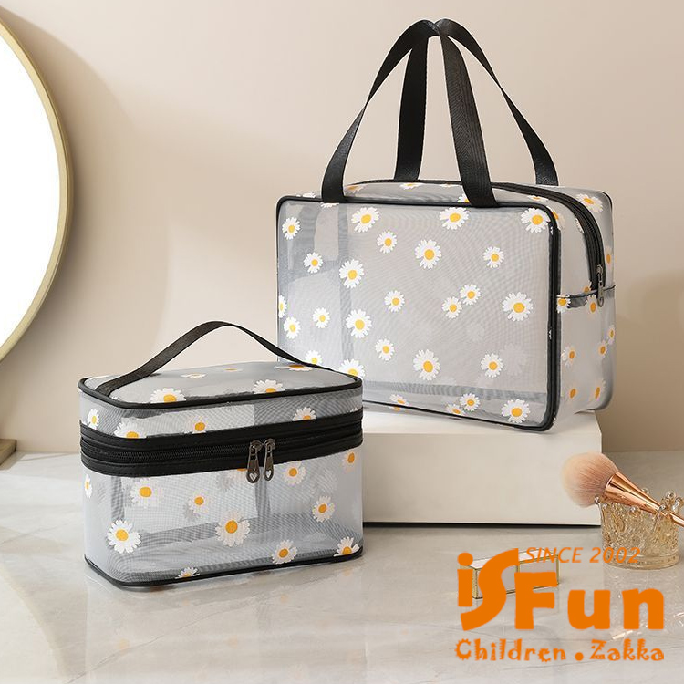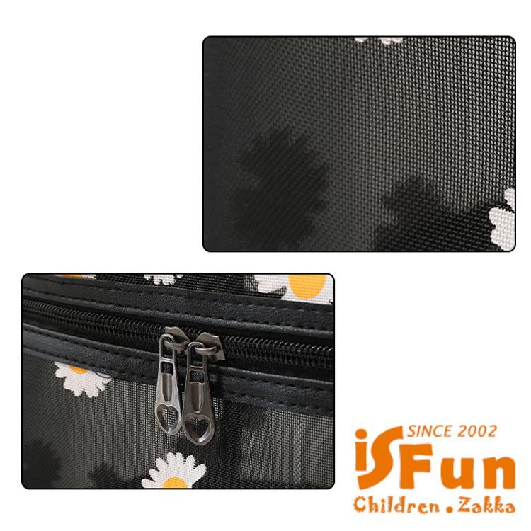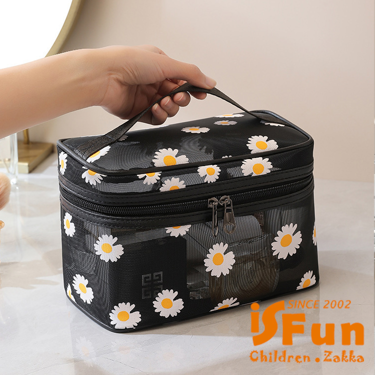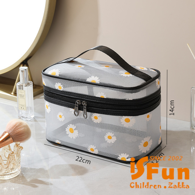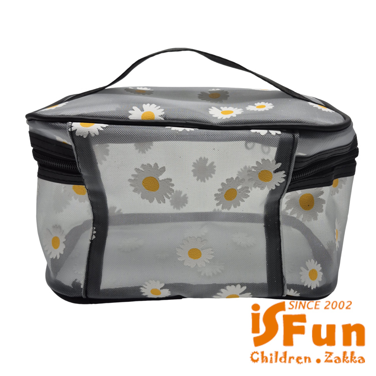 【iSFun】網紗透視 大容量多功能雛菊收納方包/黑灰