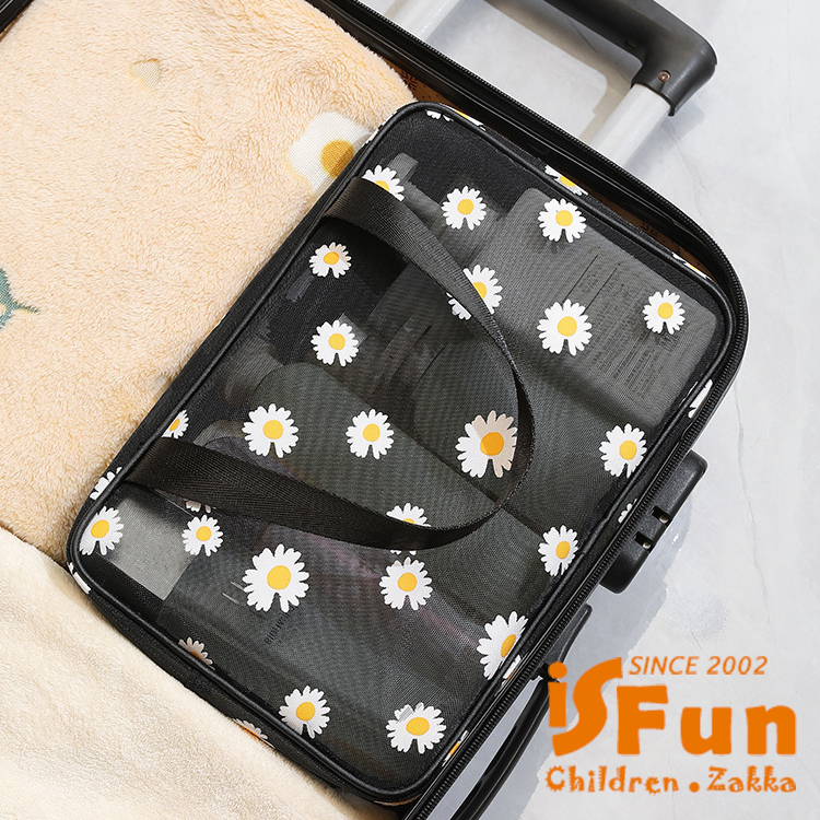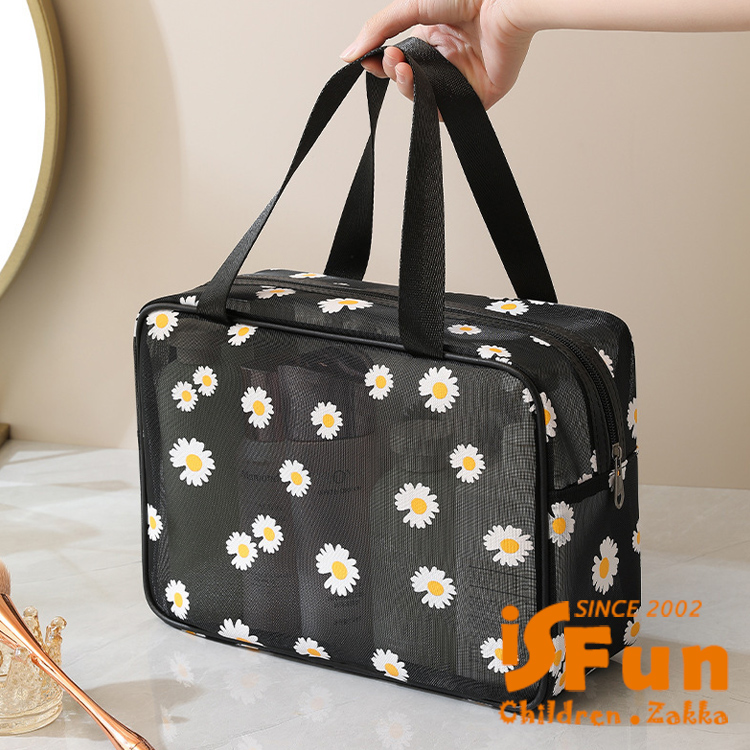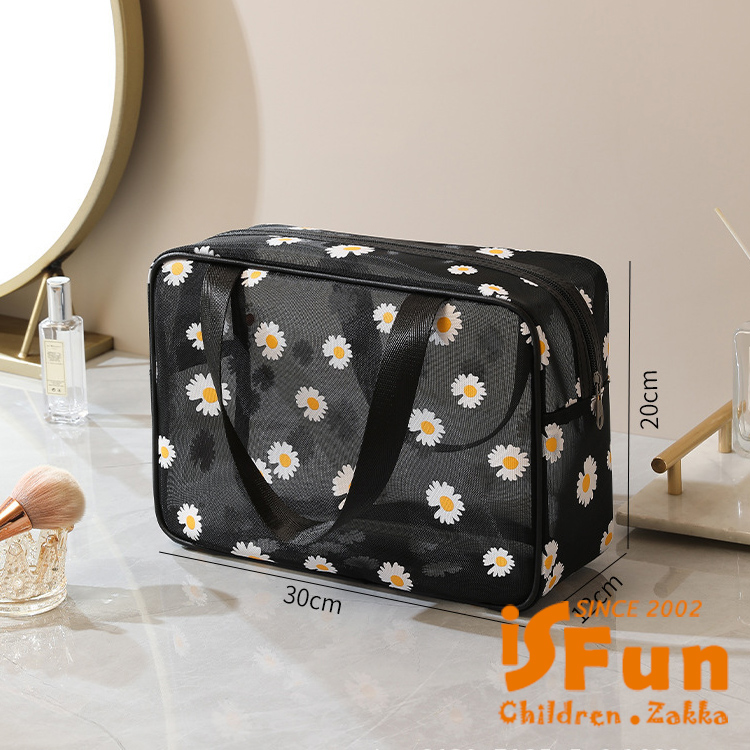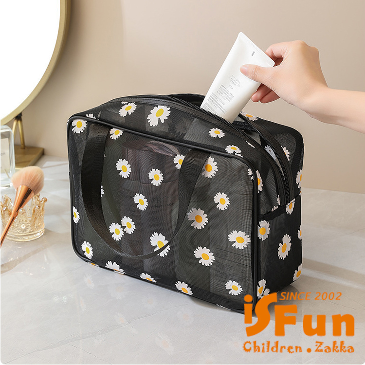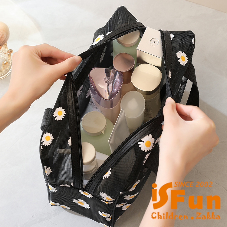 【iSFun】網紗雛菊 大容量多功能透視收納包/黑色