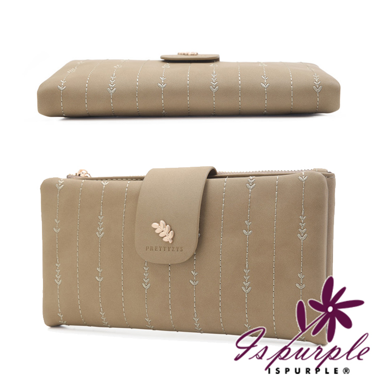 高雅簡約對折式長夾,精緻刺繡皮革材質,