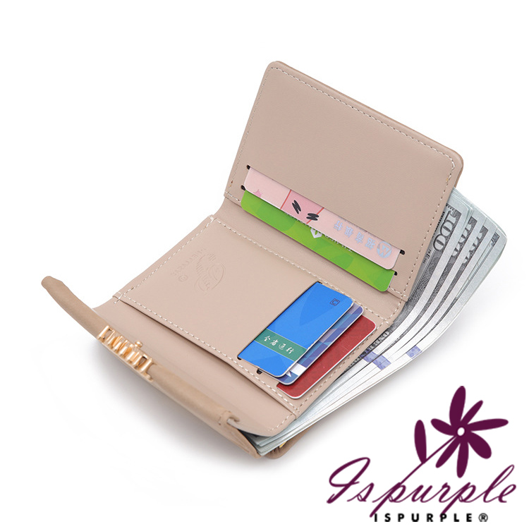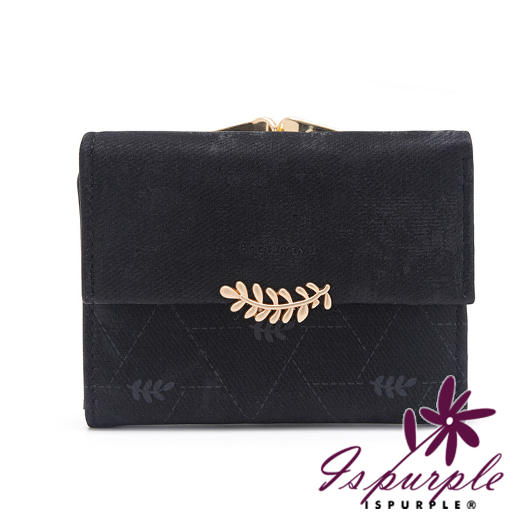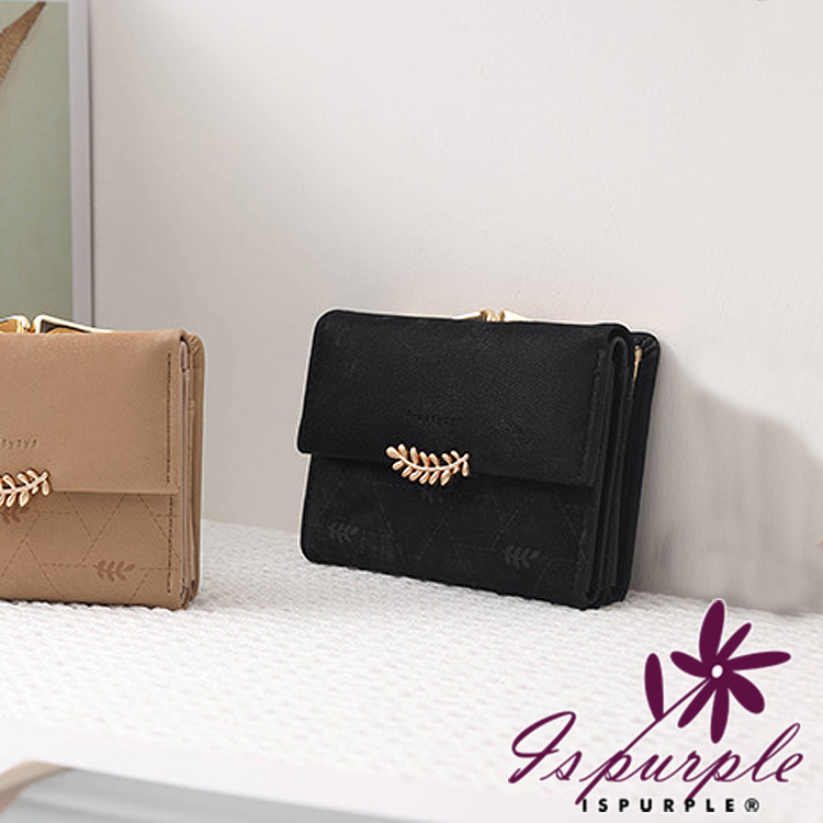 【iSPurple】稻穗印壓 印花霧面麂皮三折零錢短夾/黑