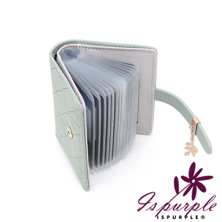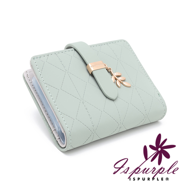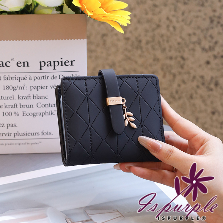 【iSPurple】搖曳金葉 菱格壓紋皮防盜刷卡片短夾/黑