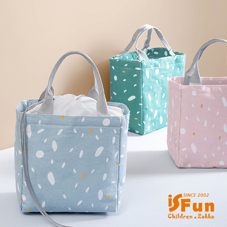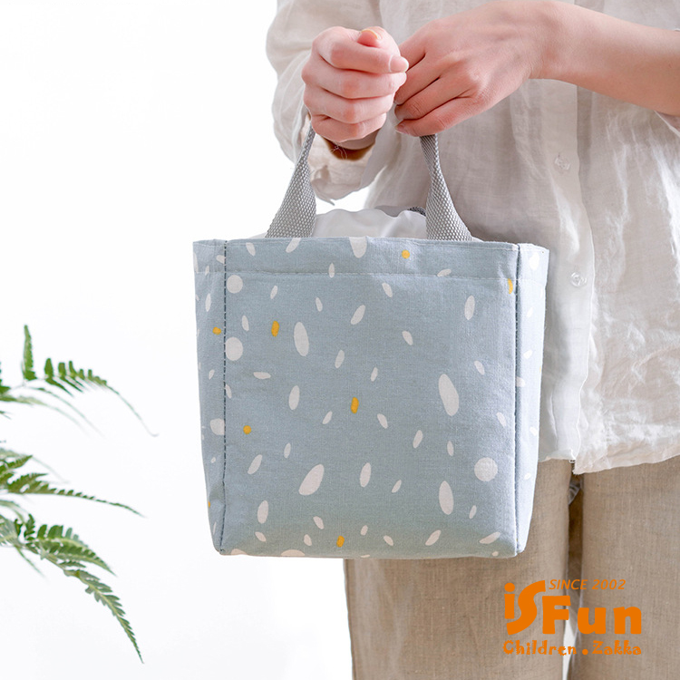 【iSFun】暖冬雪花*束口手提保冷保溫便當包/淺藍