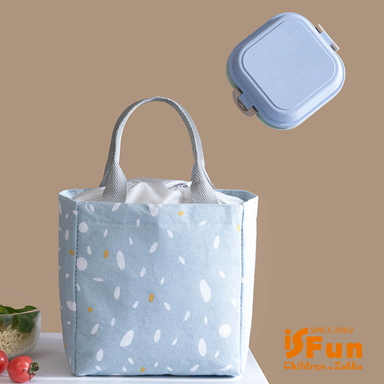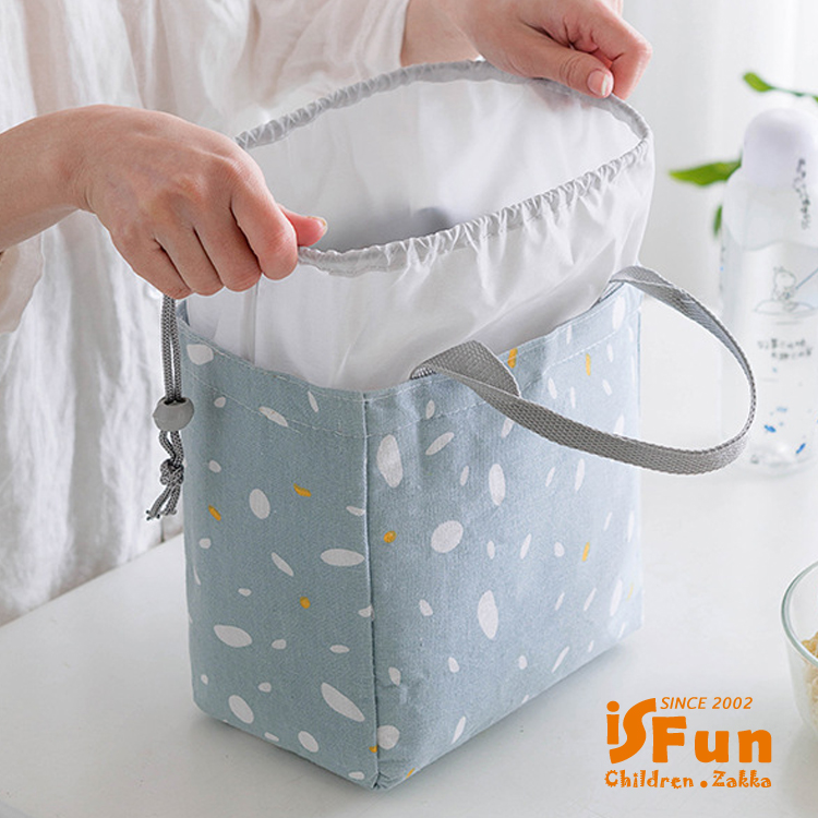 【iSFun】暖冬雪花*束口手提保冷保溫便當包/灰