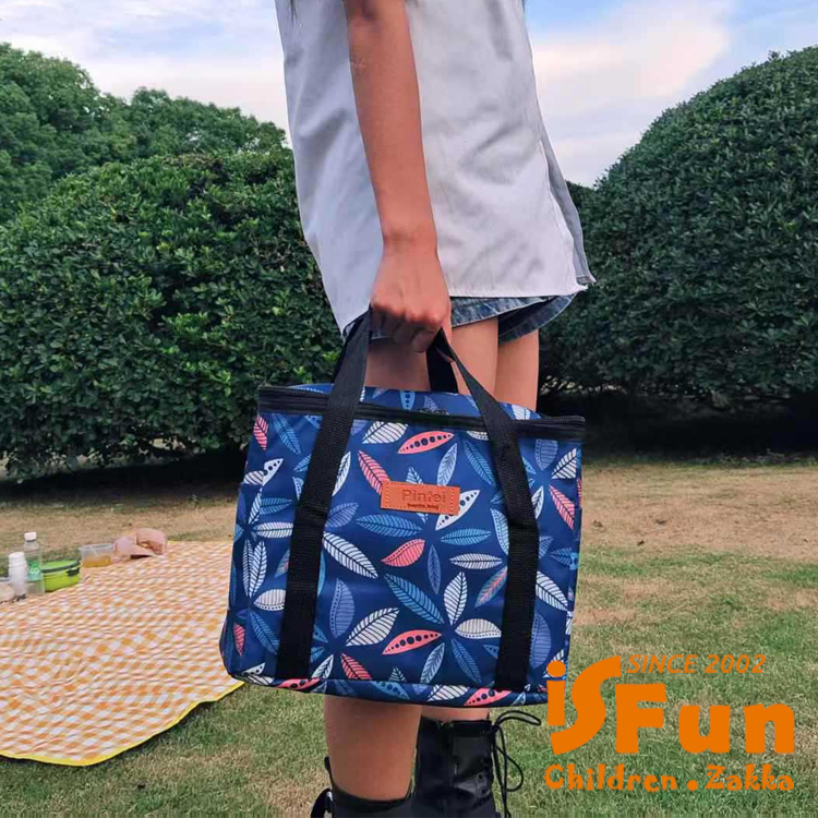 【iSFun】繽紛印花 大容量方型手提保冷保溫便當包/葉片