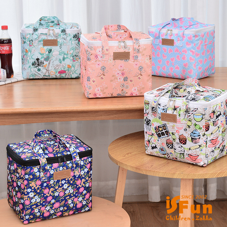 繽紛印花大容量方型保溫保冷包,簡單手提帶著走!