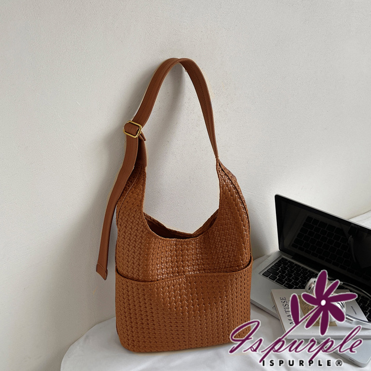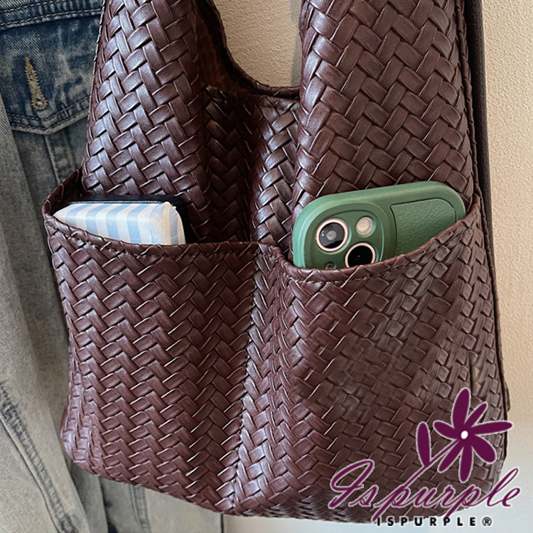 【iSPurple】韓風時尚 仿皮編織壓紋復古百搭托特包/棕色