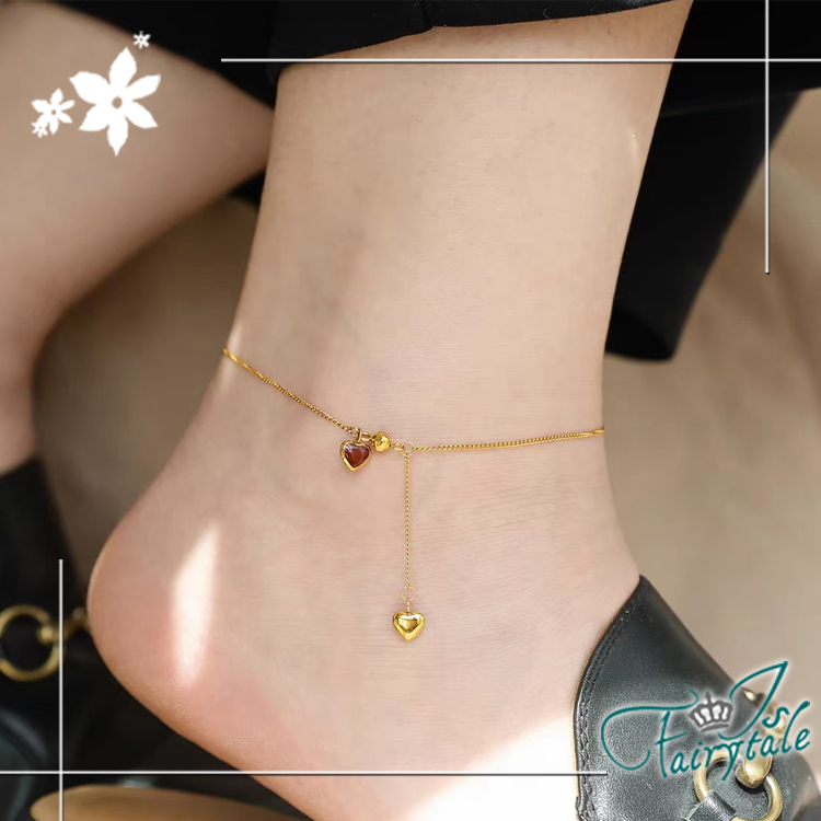 【伊飾童話】復古雙心 不對稱滴油流蘇鈦鋼短項鍊/金