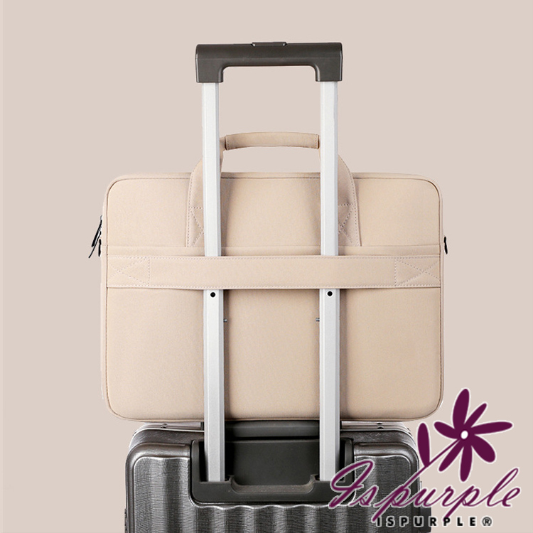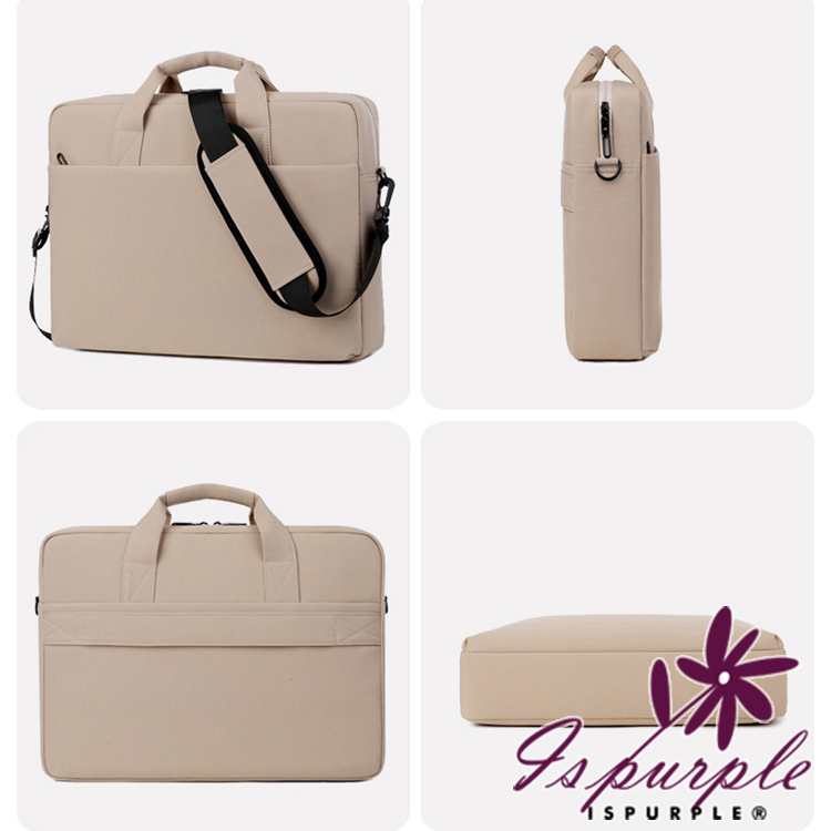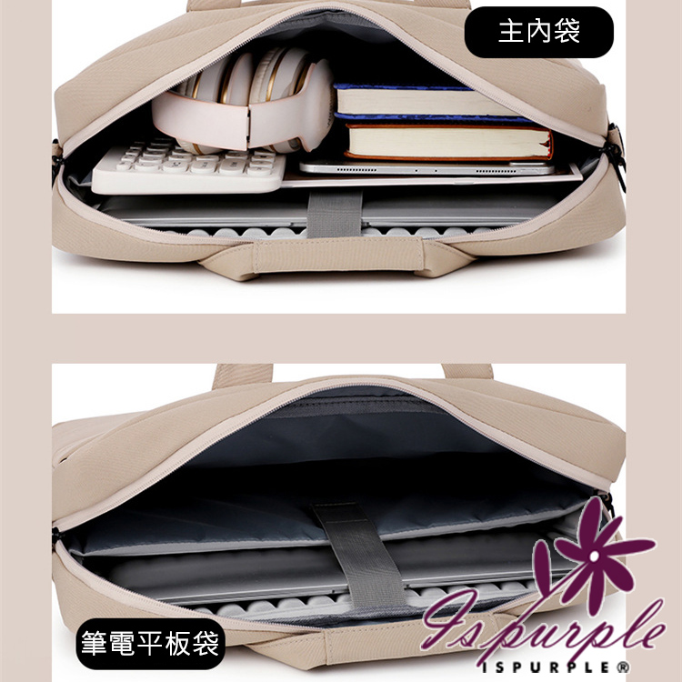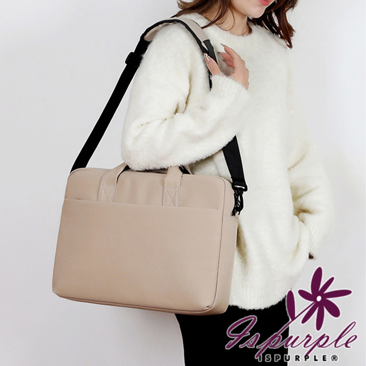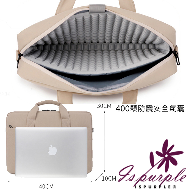 【iSPurple】簡約清新 大容量單肩手提防震氣囊電腦包/卡其