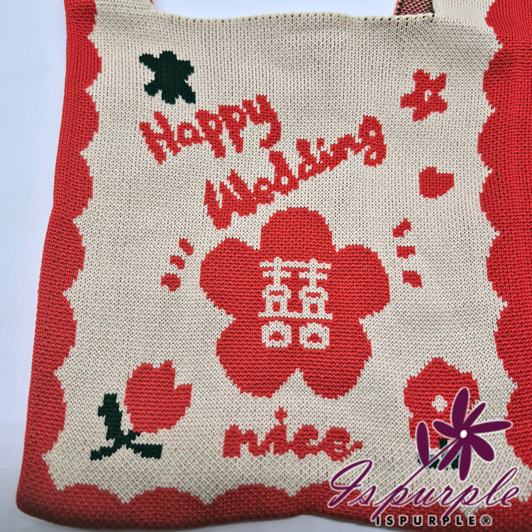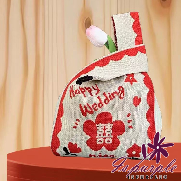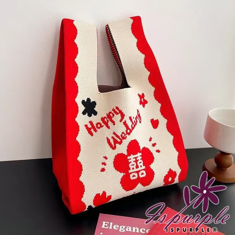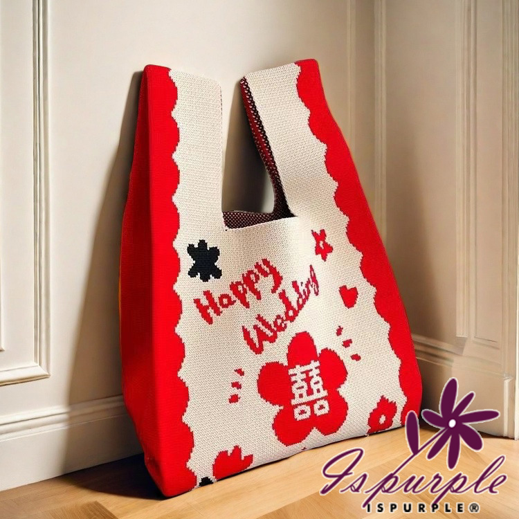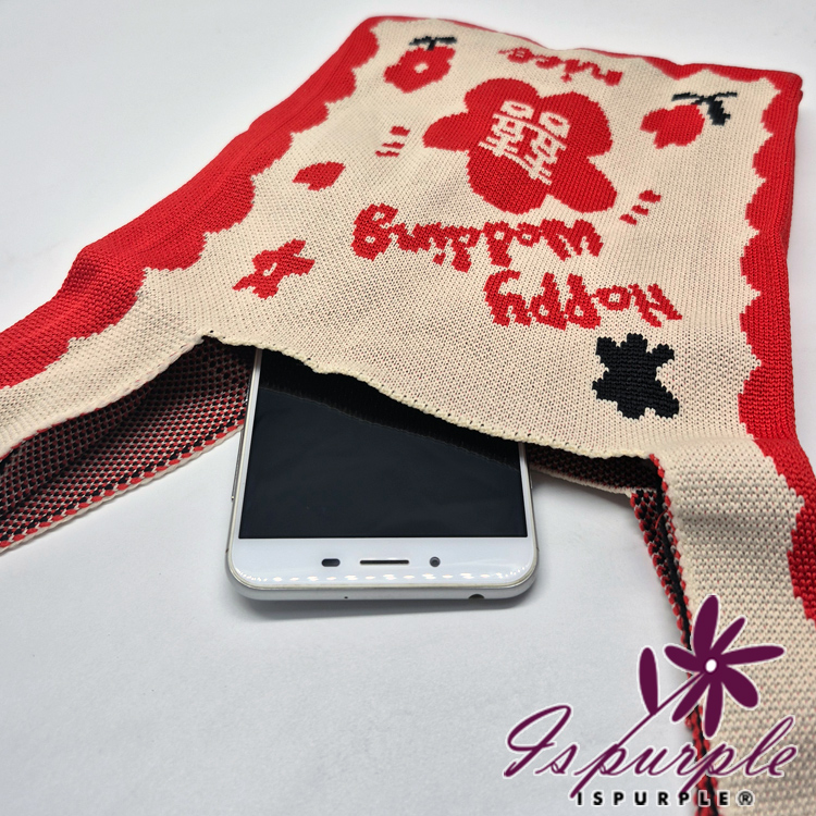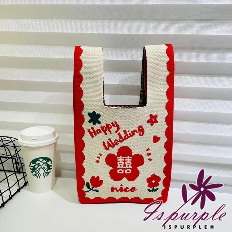 【iSPurple】輕巧針織 手腕購物手提背心包/囍紅白色