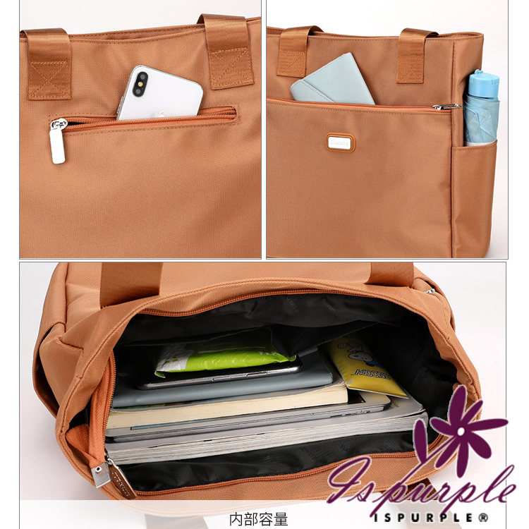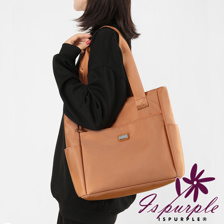 【iSPurple】純色時尚 手提尼龍輕便單肩托特包/橘色
