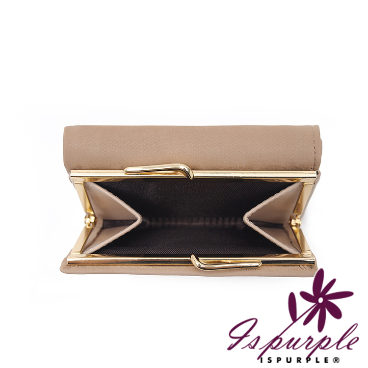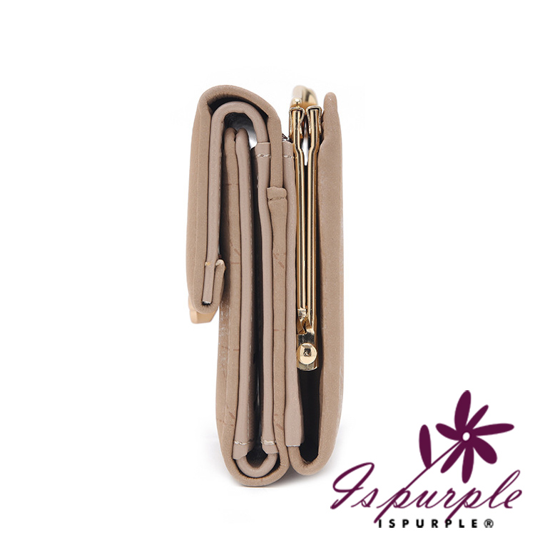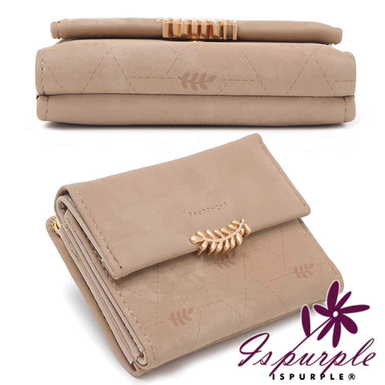 【iSPurple】稻穗印壓 印花霧面麂皮三折零錢短夾/灰