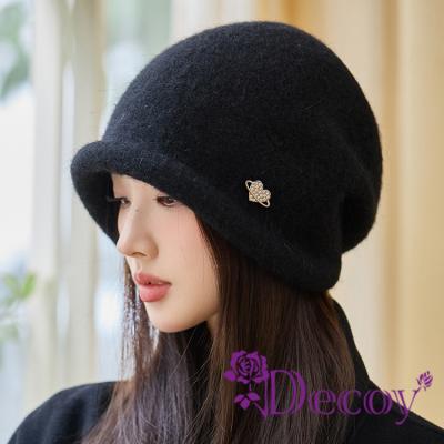 【Decoy】愛心水鑽 韓系毛絨針織顯臉小秋冬包頭帽/黑色