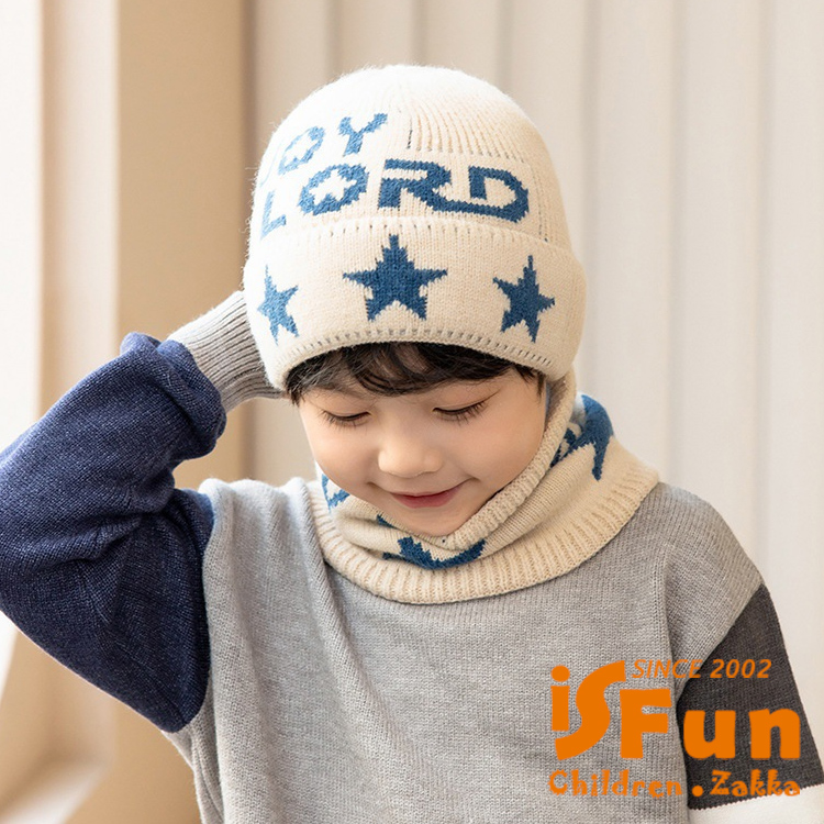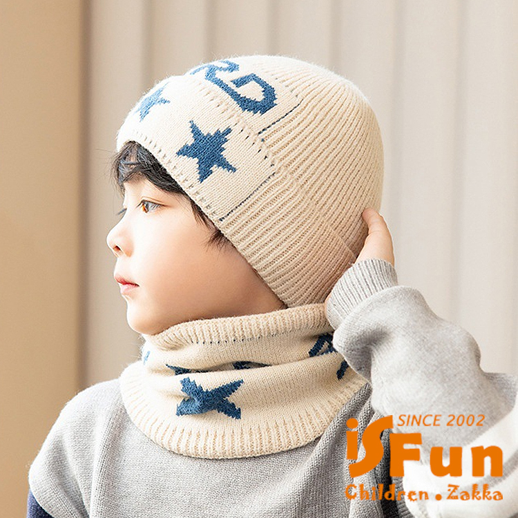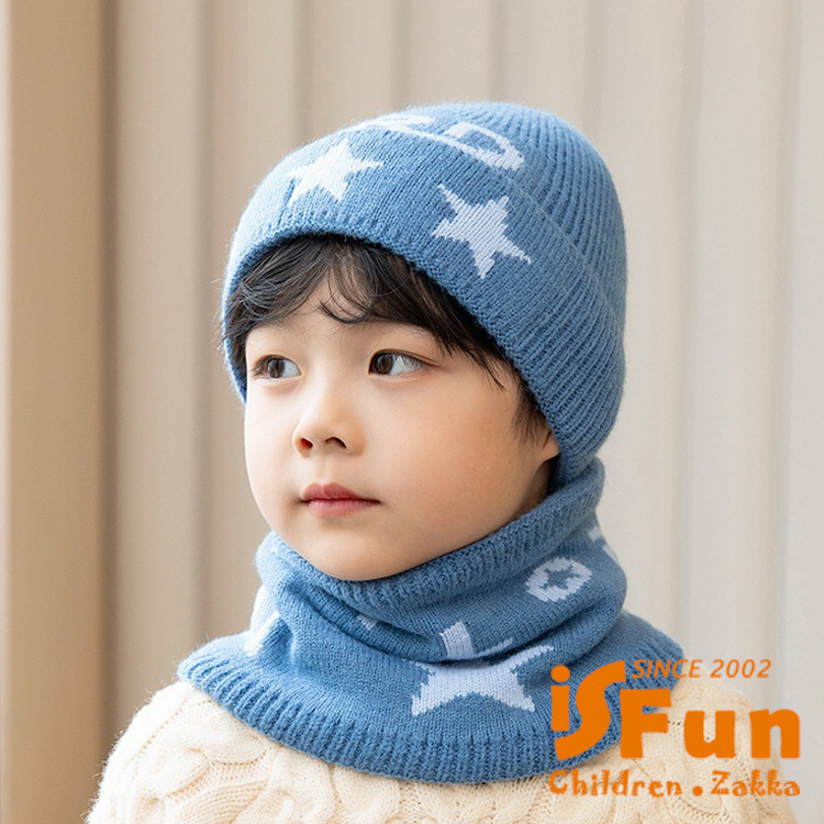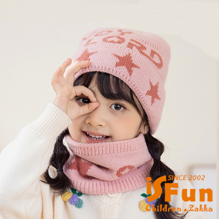 【iSFun】韓版星星 秋冬兒童保暖護耳針織帽圍脖2件組/粉色