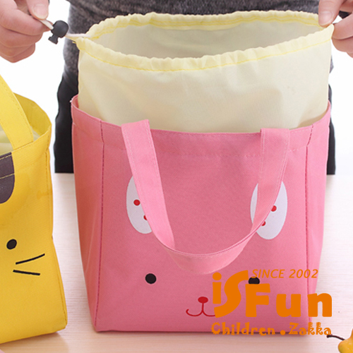 【iSFun】動物笑臉*保溫束口便當袋/黃