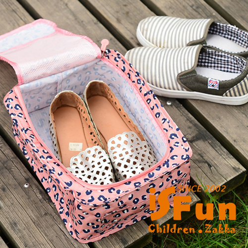 【iSFun】輕巧摺疊*迷你防水尼龍鞋袋/粉紅豹紋