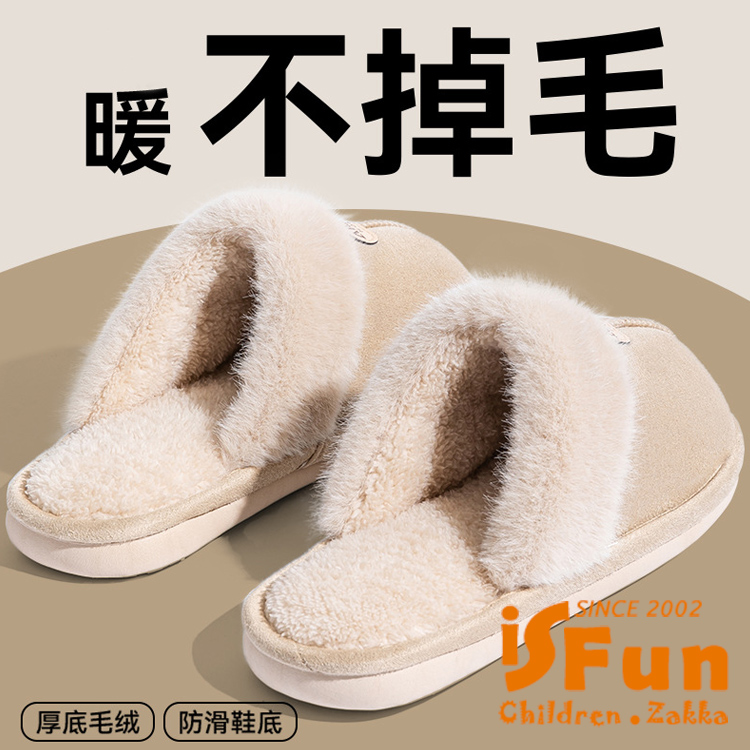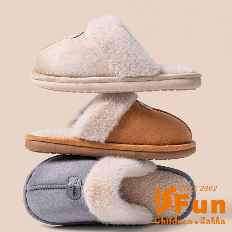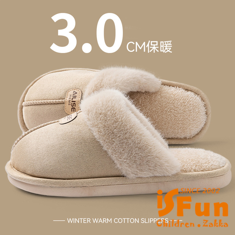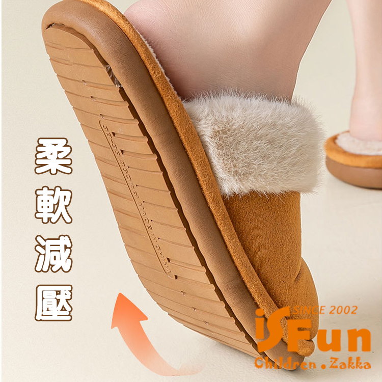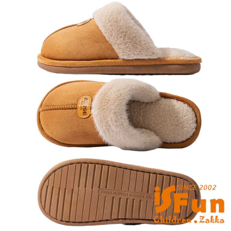 【iSFun】時尚加絨 秋冬保暖防滑室內拖鞋/卡其3839號