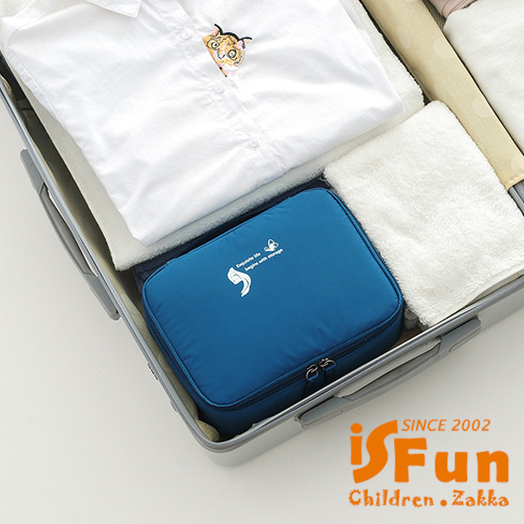 【iSFun】手提便攜 防水防撞多功能四方盥洗包/藍