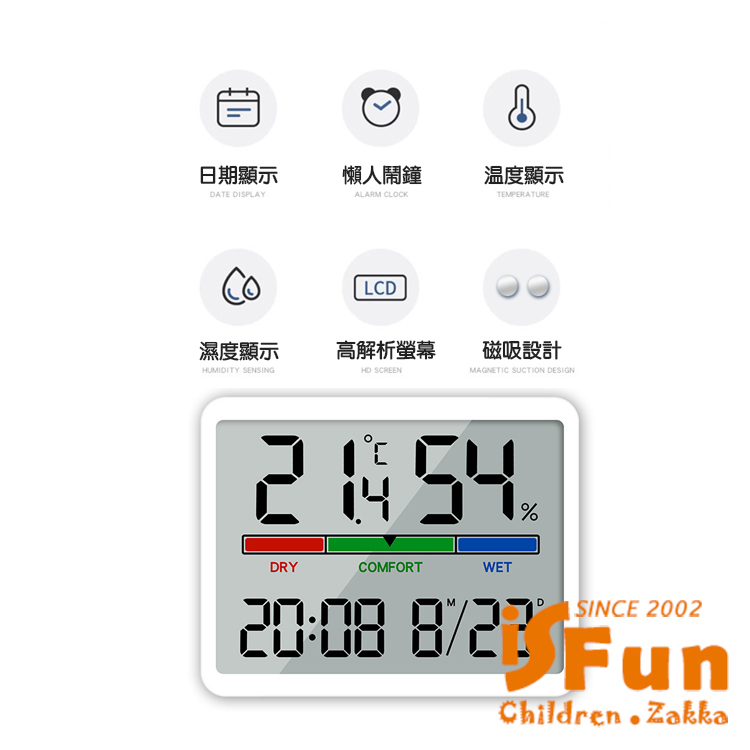 【iSFun】輕巧時鐘 多功能磁吸電子計時測溫鬧鐘/白