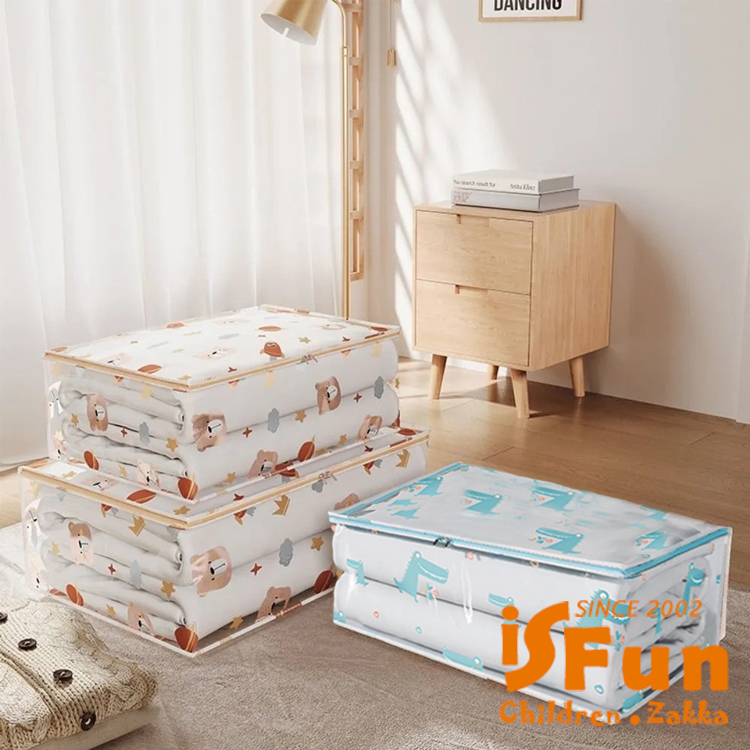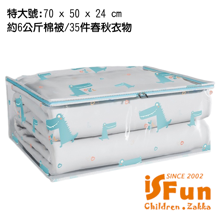 【iSFun】可愛印花 防水透視衣物棉被特大號收納袋/小藍鱷魚