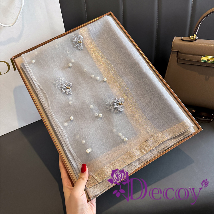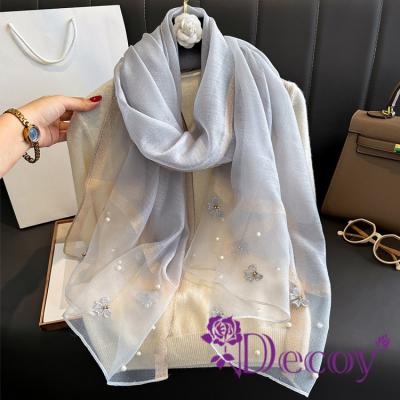 【Decoy】漸層色調 優雅珍珠釘珠薄款披肩圍巾/灰色
