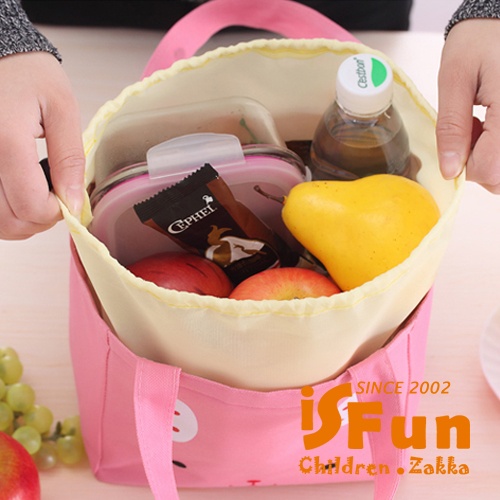 【iSFun】動物笑臉*保溫束口便當袋/粉