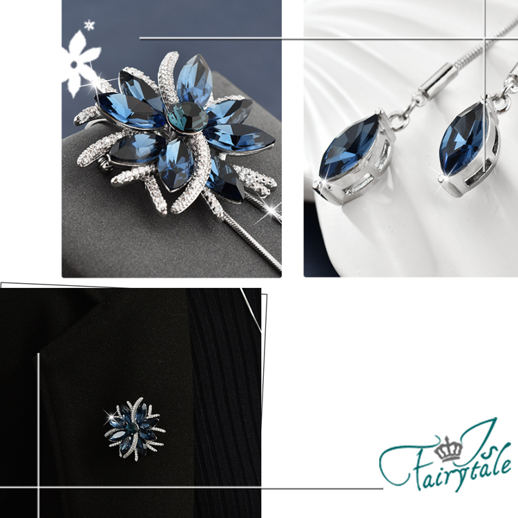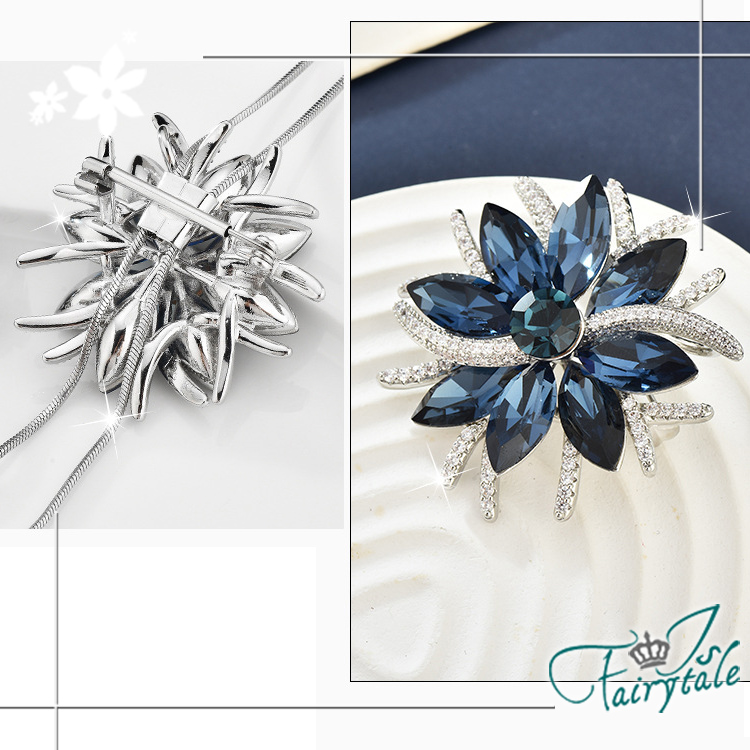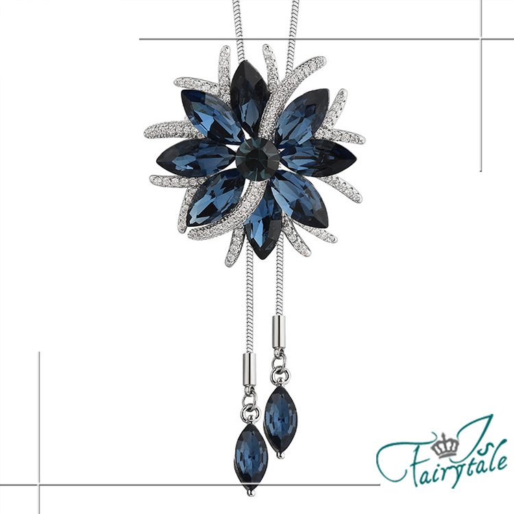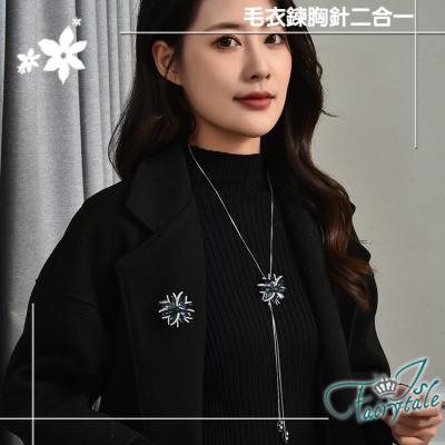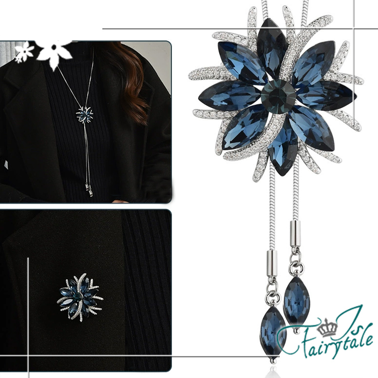 【伊飾童話】花樣水晶 水鑽二合一胸針伸縮流蘇長鍊/藍