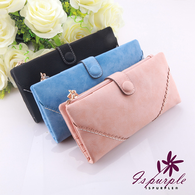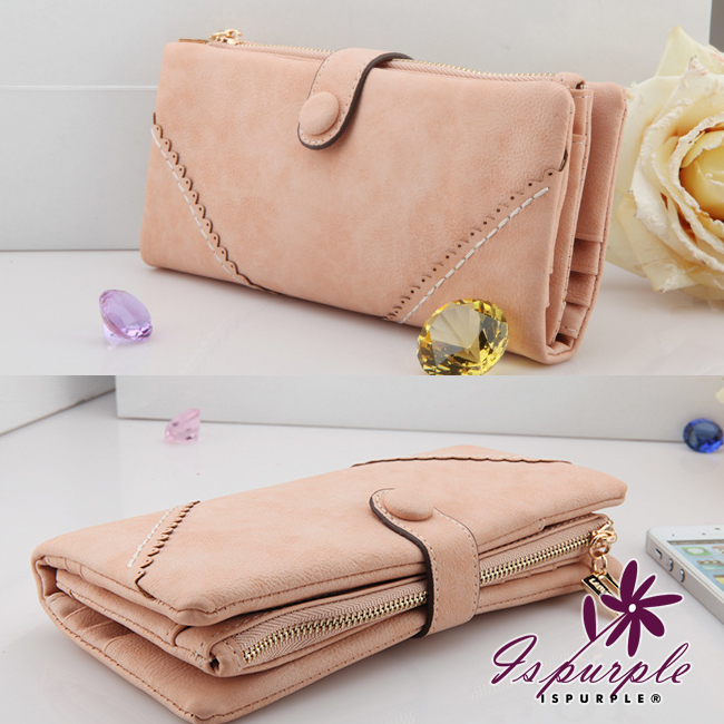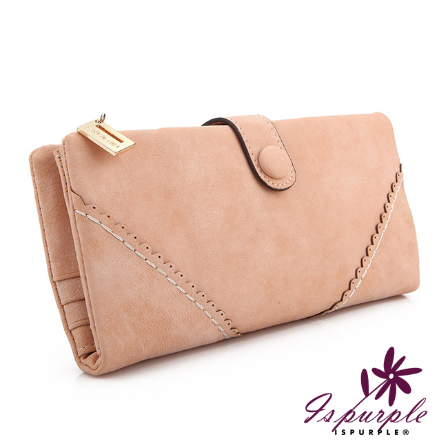 【iSPurple】菱形緹花*磨砂皮革手拿長夾/粉