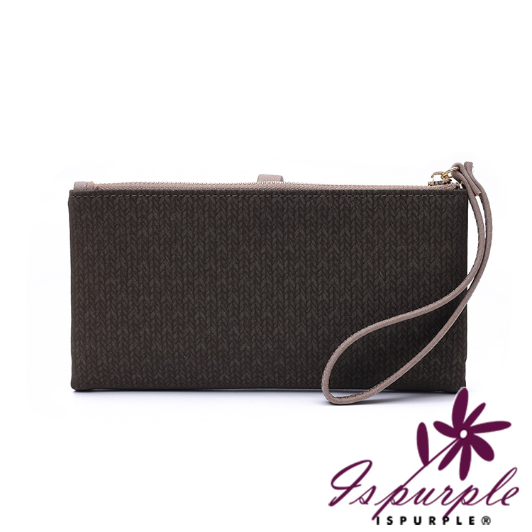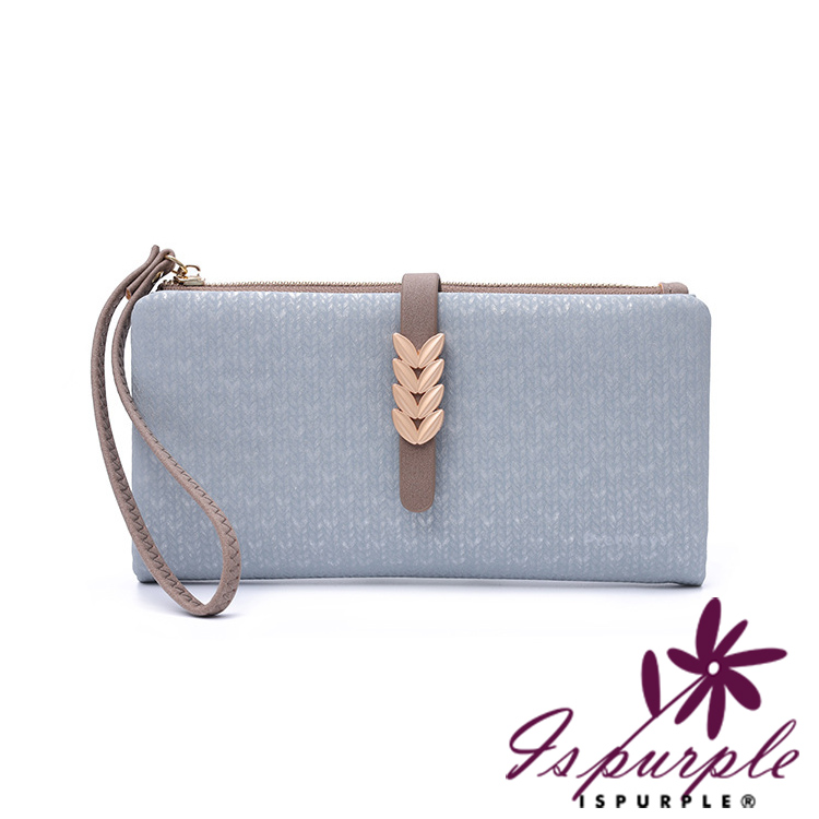 【iSPurple】桂冠金葉 輕軟壓花紋皮革零錢長夾/藍