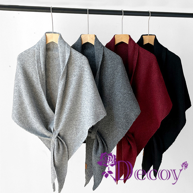 【Decoy】慵懶交叉 三角保暖仿羊絨披肩圍巾/酒紅