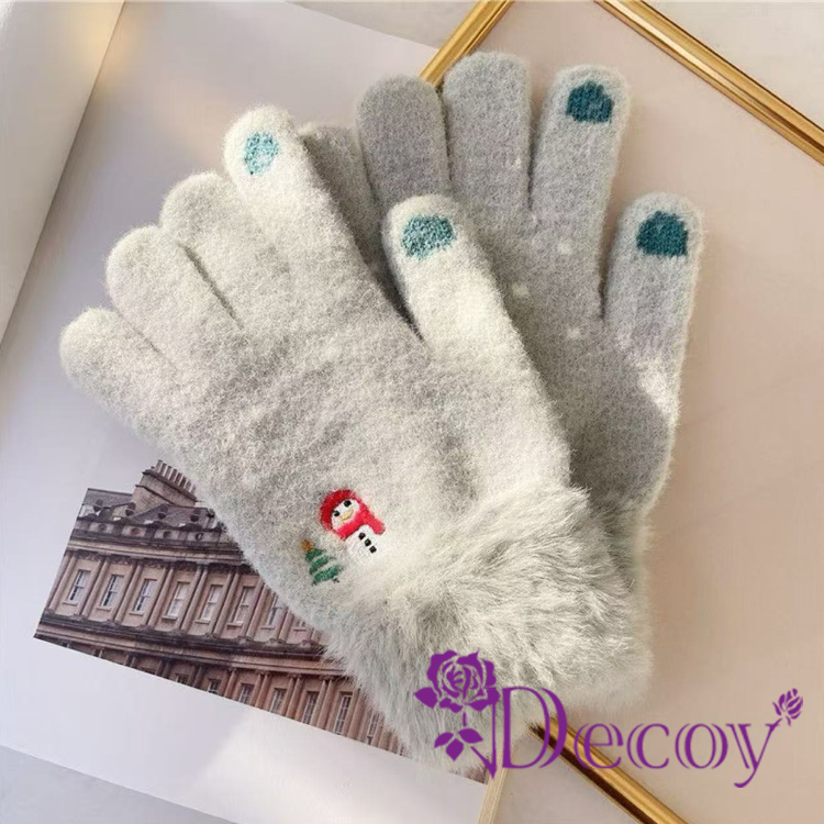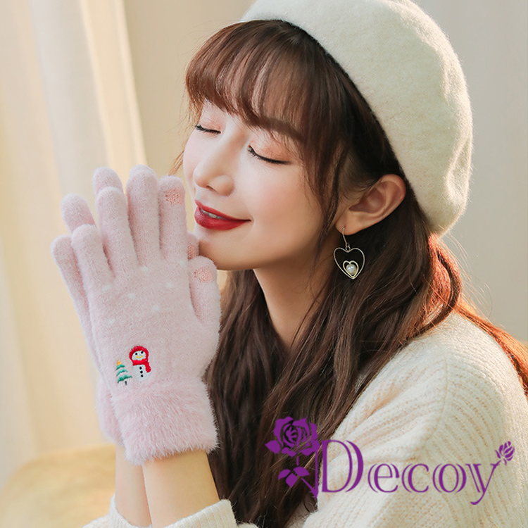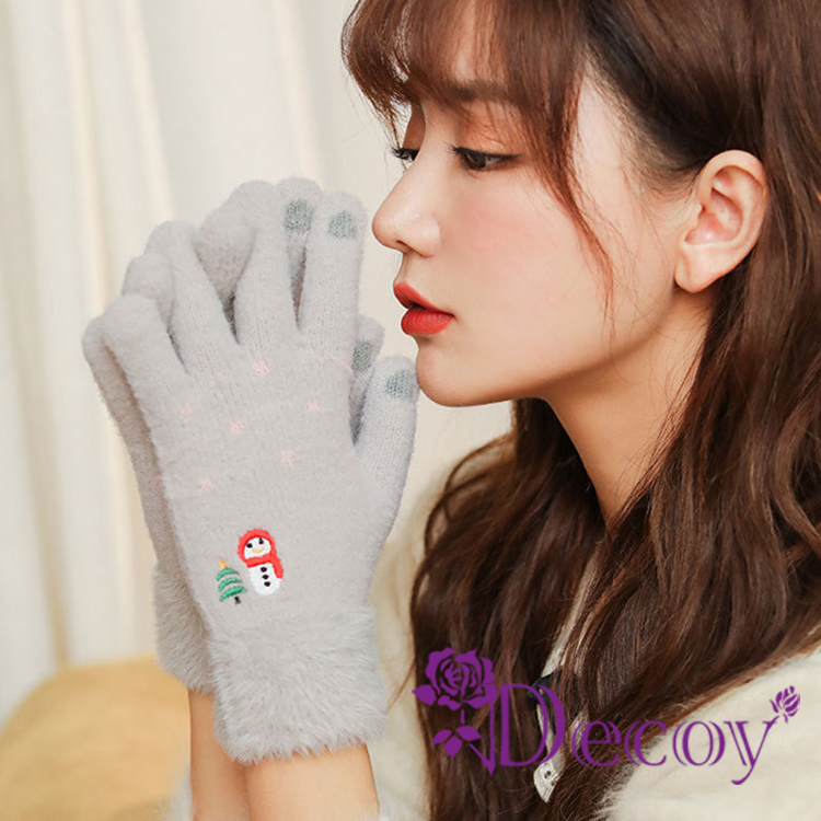 【Decoy】微笑雪人 觸控彈性仿羊絨保暖手套/淺藍