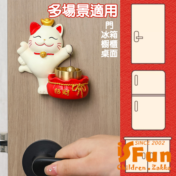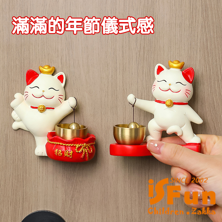 【iSFun】招財進門 貼式黃銅懸掛招財貓門鈴/一般款