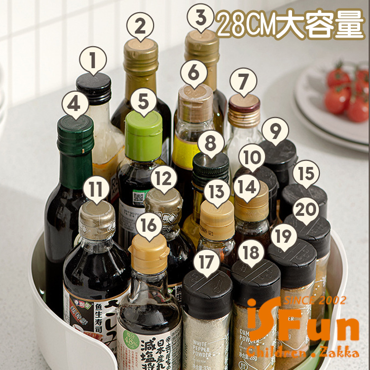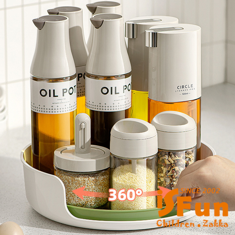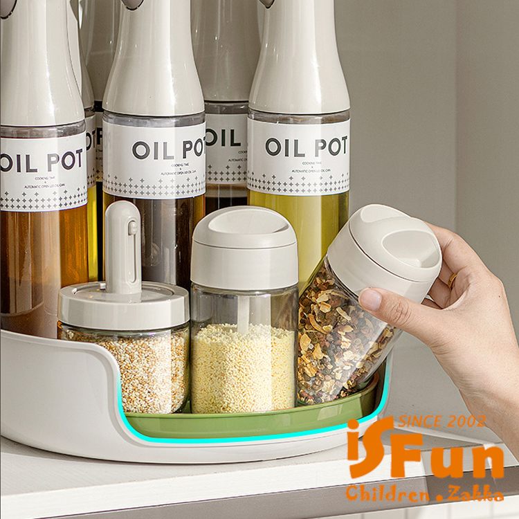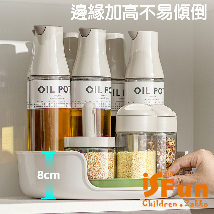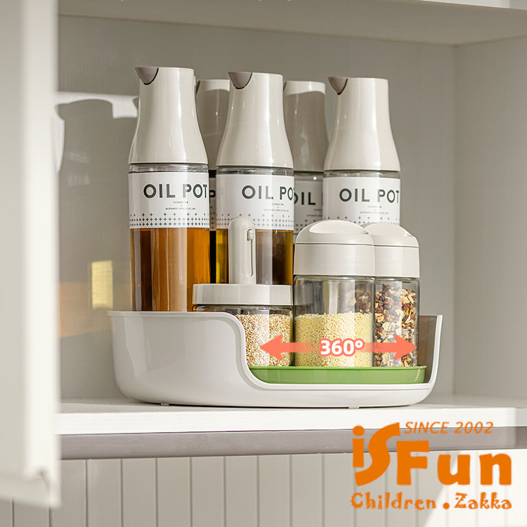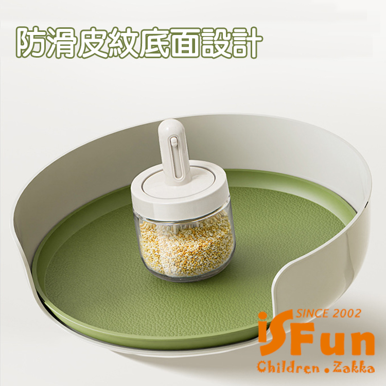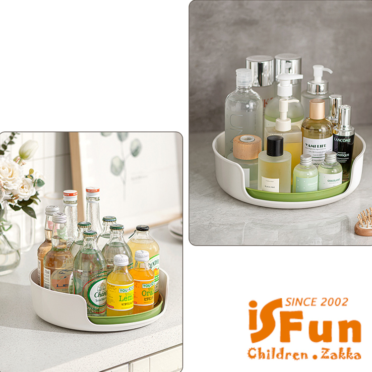 【iSFun】半開旋轉 桌面廚房多功能收納置物架/白綠