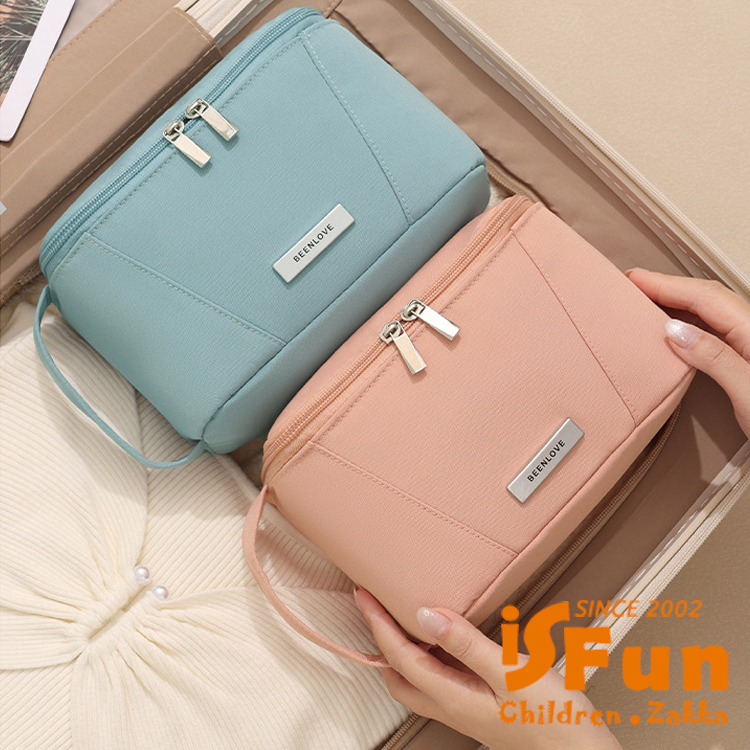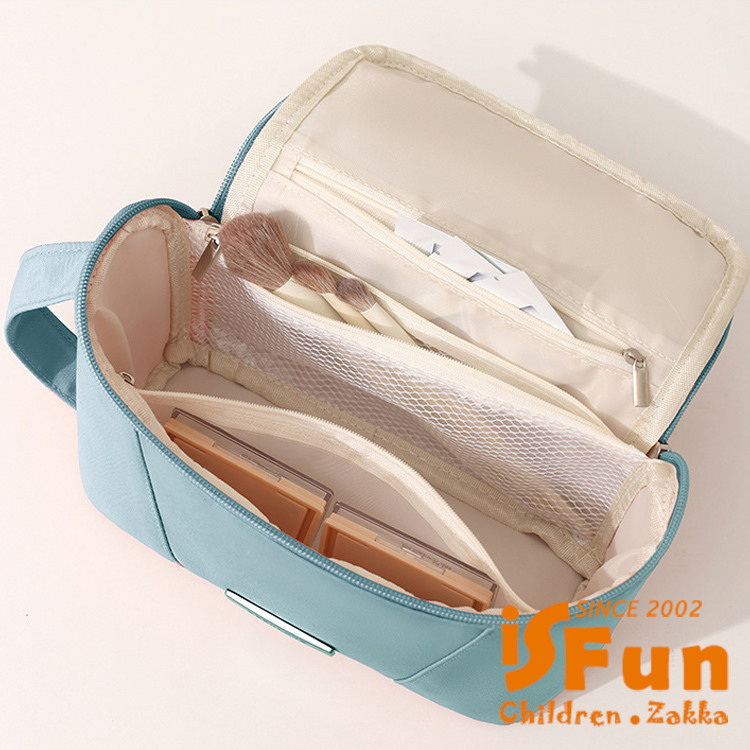 【iSFun】簡約色調 大開口多用途化妝包洗漱收納包/藍色