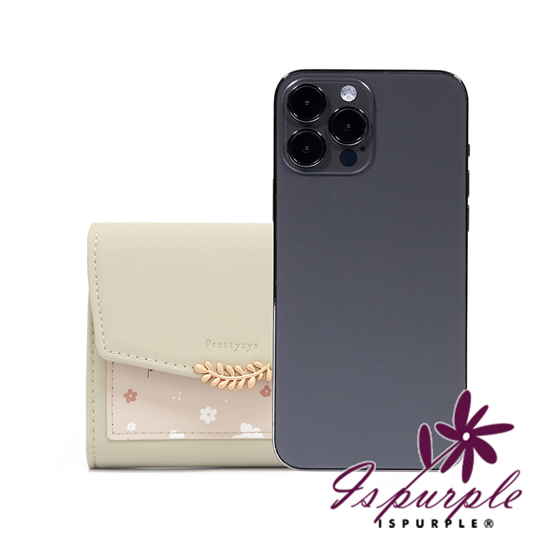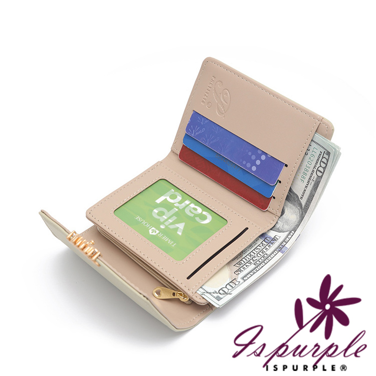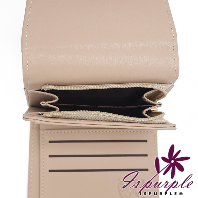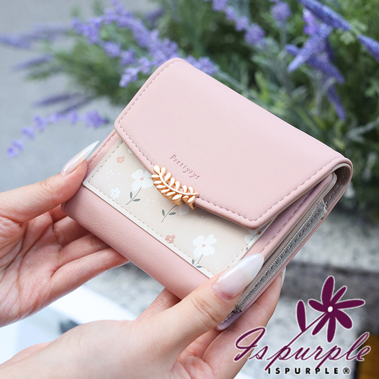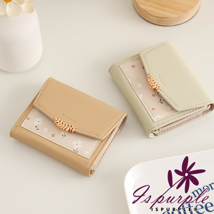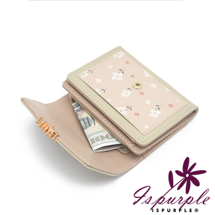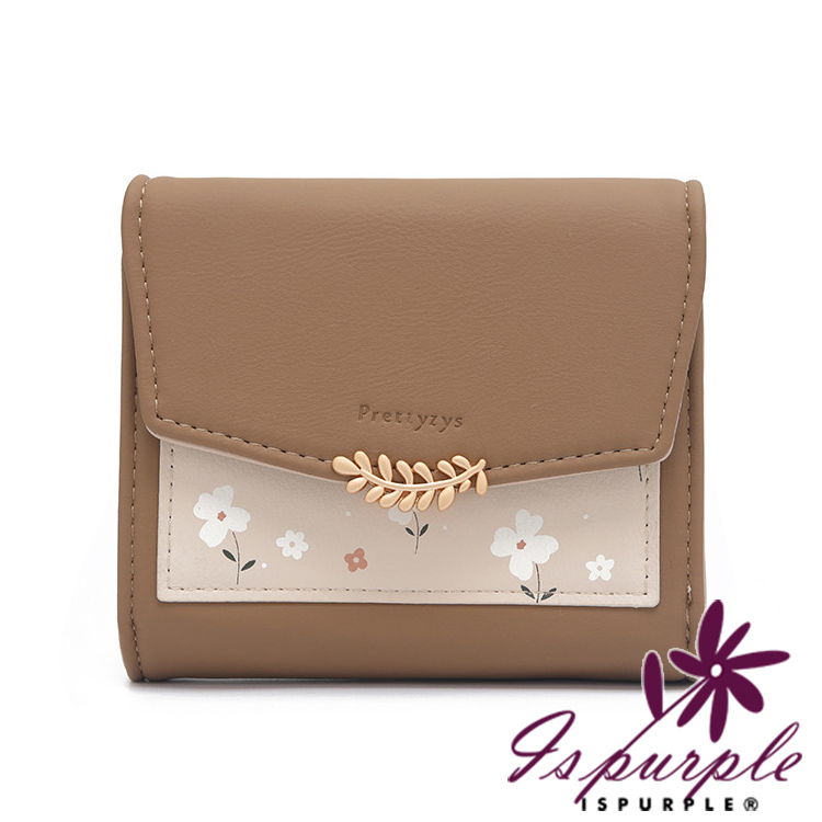 【iSPurple】清新滿花 印花皮革三折金釦零錢短夾/咖啡
