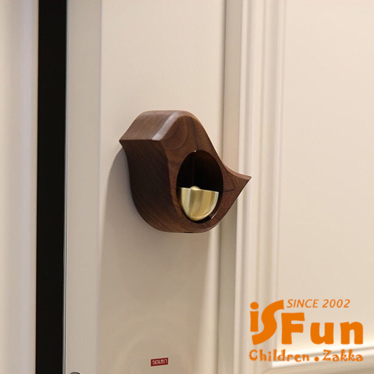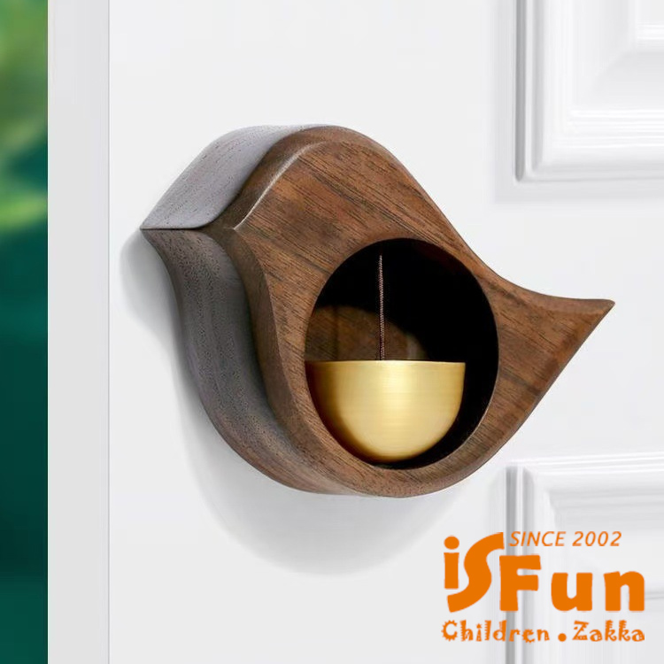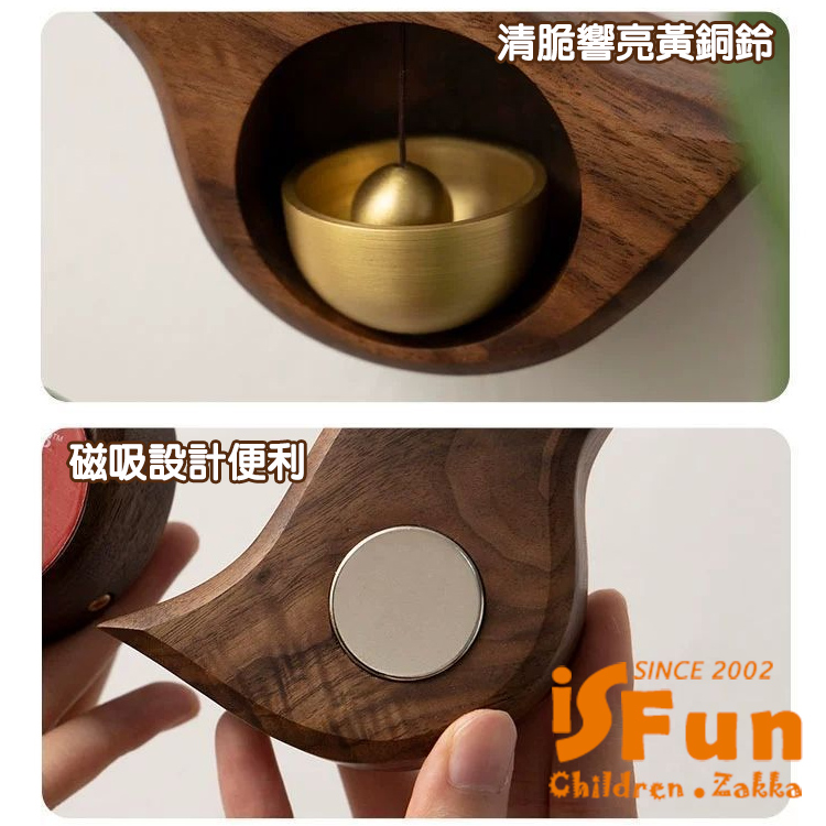 【iSFun】木鳥與銅 磁吸式黃銅懸掛胡桃木門鈴