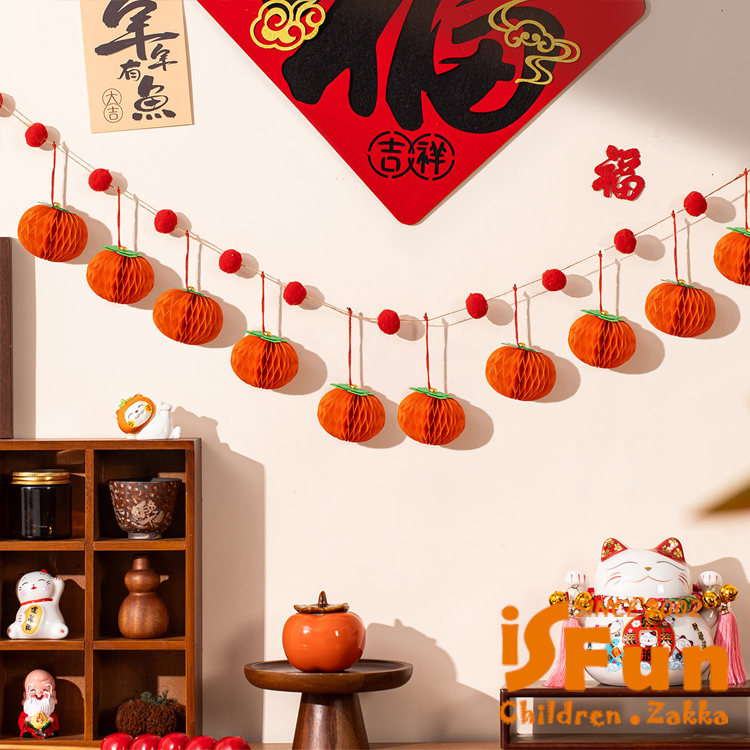 【iSFun】迎春佈置 盆景裝飾蜂窩球小掛飾5入/柿子