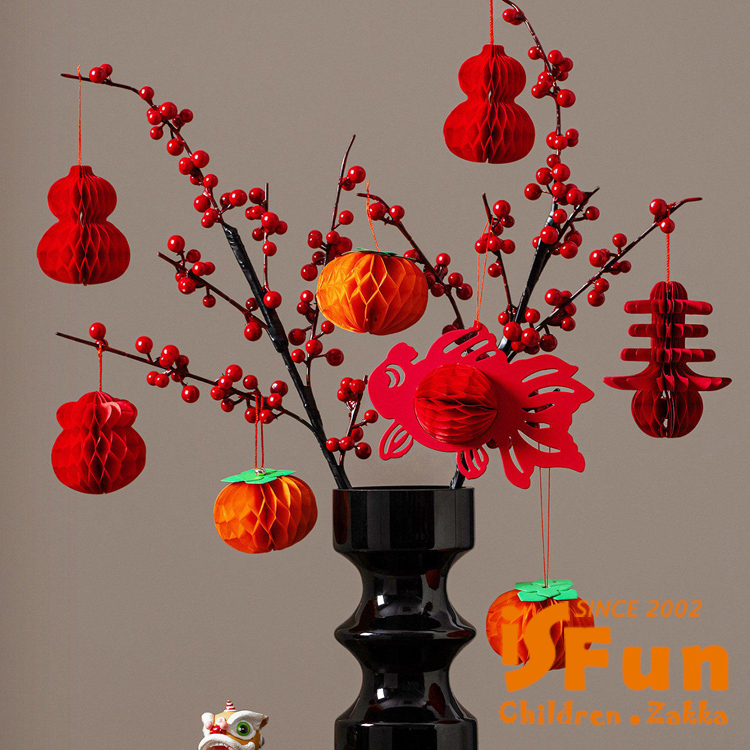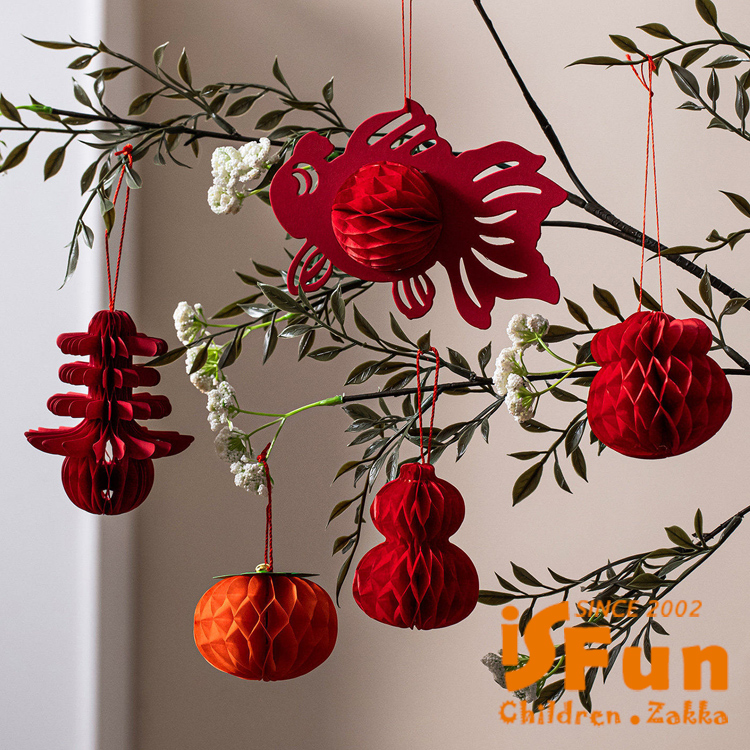 【iSFun】迎春佈置 盆景裝飾蜂窩球小掛飾5入/葫蘆