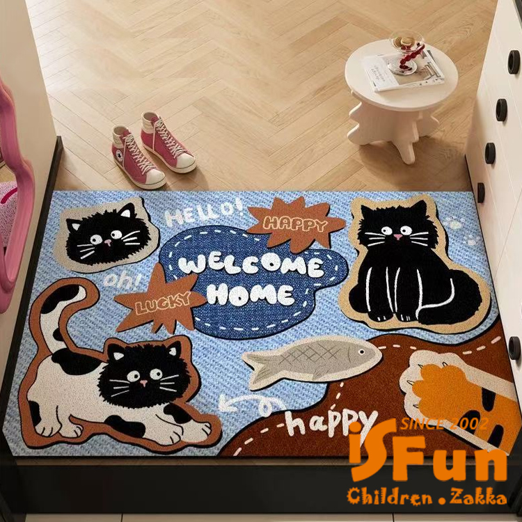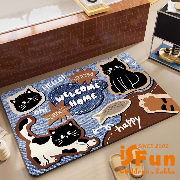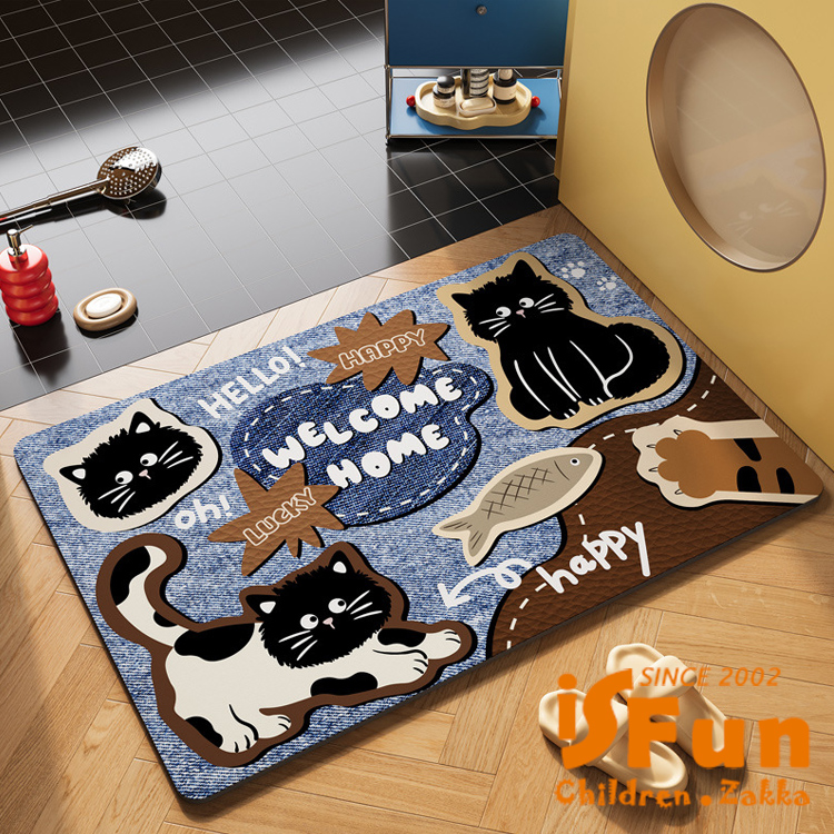 【iSFun】吸水珪藻土 浴室廚房軟地墊50x80cm/牛仔小貓