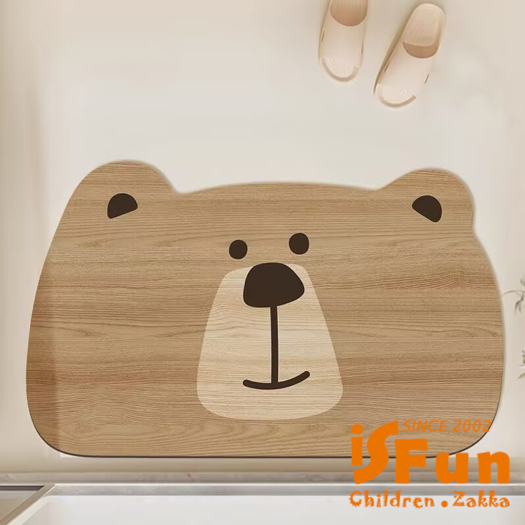 【iSFun】動物大臉 吸水珪藻土軟地墊50x80cm/木紋大熊
