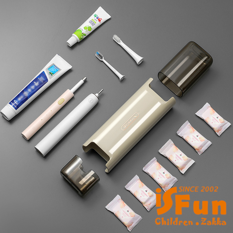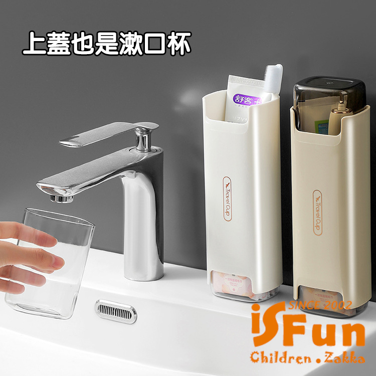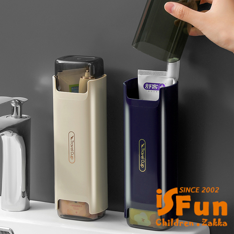 【iSFun】旅行洗漱 牙膏牙刷漱口杯外出攜帶收納盒/深藍