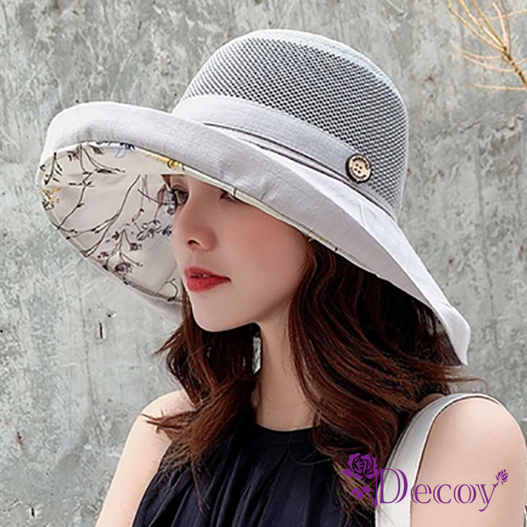 【Decoy】鏤空花卉*透氣防曬漁夫遮陽帽/灰綠