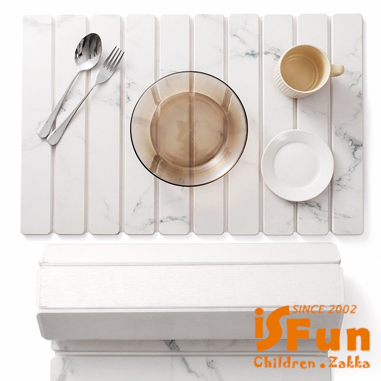 【iSFun】可折疊 多功能珪藻土吸水墊碗碟瀝水墊 60x39cm/大理石