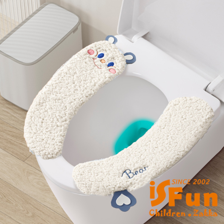 【iSFun】衛浴暖坐 毛絨熊熊加厚魔鬼氈馬桶坐墊2對/米