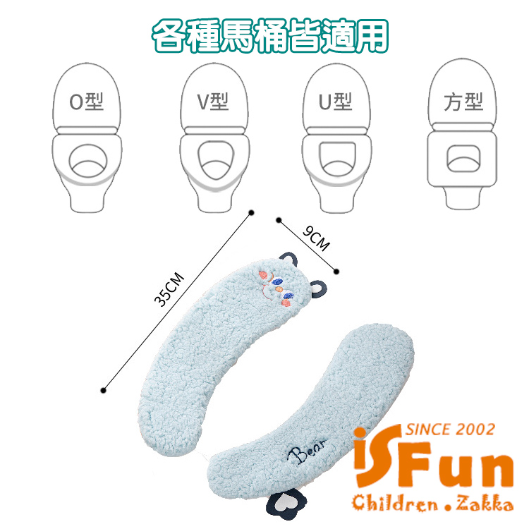 可愛毛絨熊熊加厚馬桶墊,一對2片,超值組合二對組,