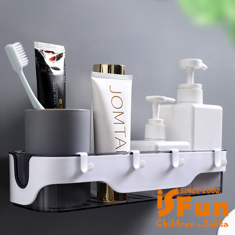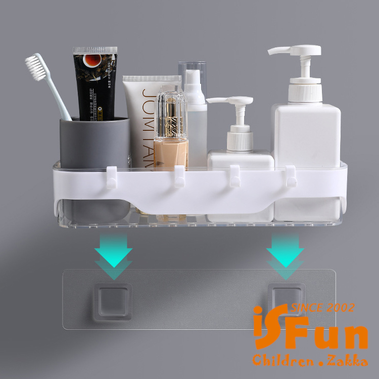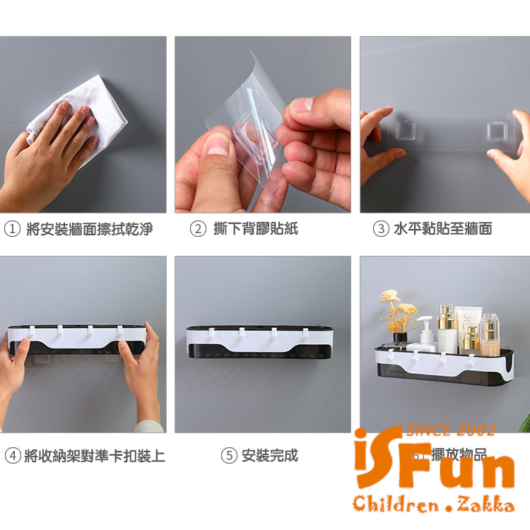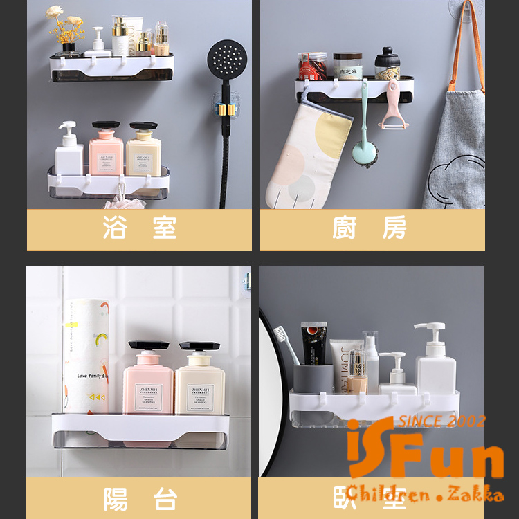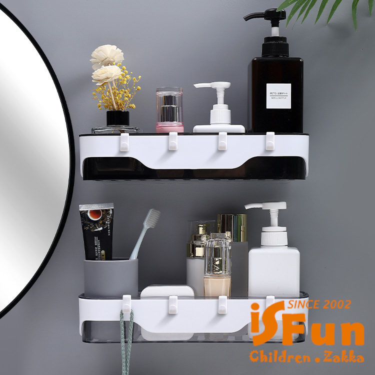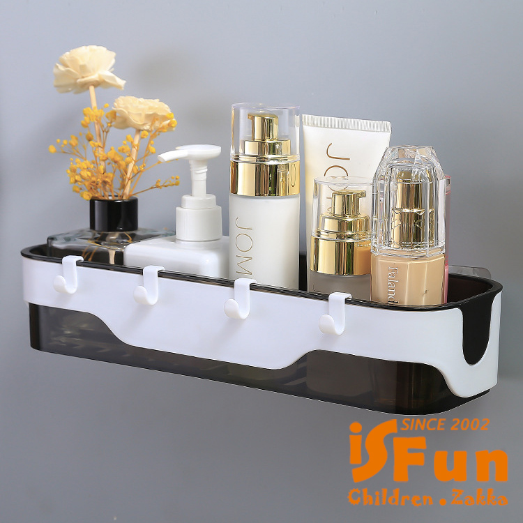 【iSFun】簡約收納 無痕壁掛式多功能置物架/黑