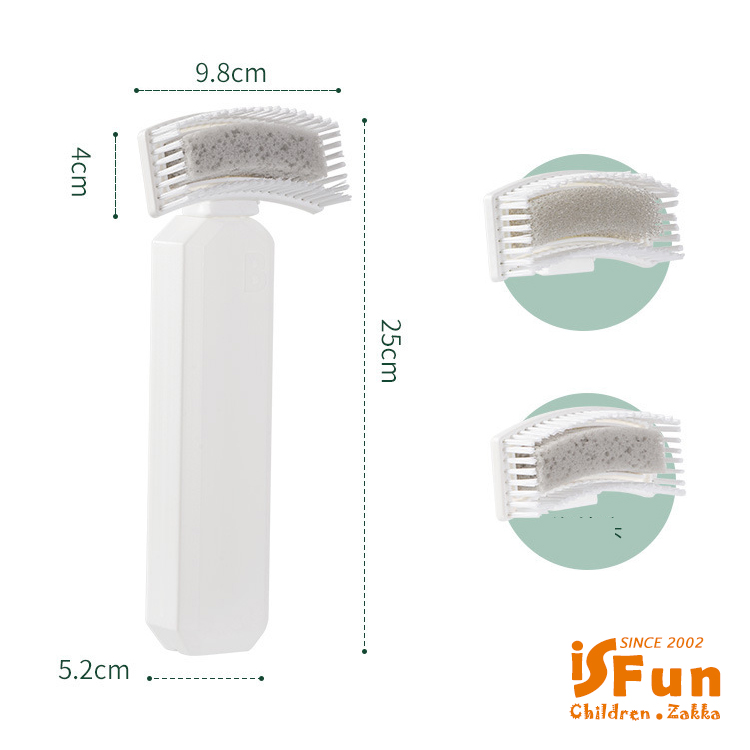二種不同的刷頭,可隨意替換使用,也可使用在衛浴掃除上,長方型的刷頭設計清潔無死角。