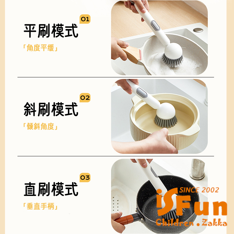 可任意調節六種不同角度,平刷/斜刷/直刷,可應付各種鍋具,