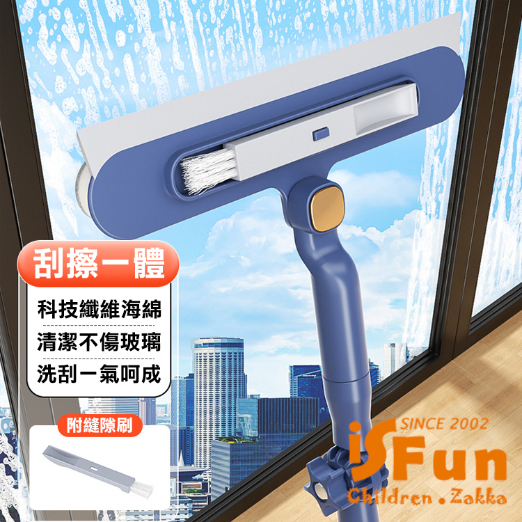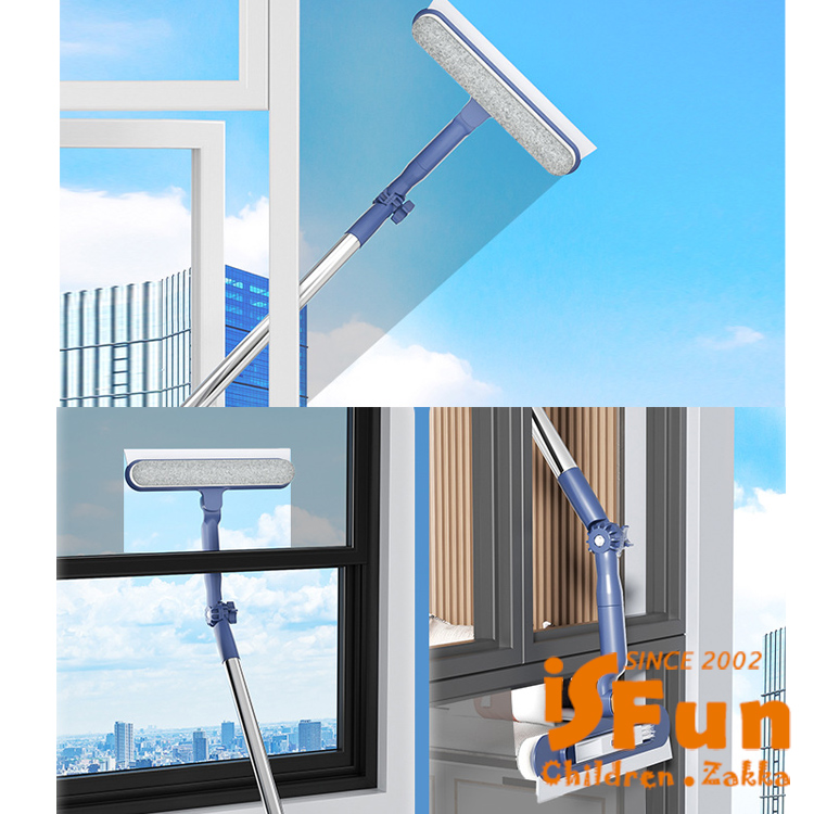 【iSFun】清潔神器 多功能可調角度窗戶玻璃清潔刷1.2米/藍