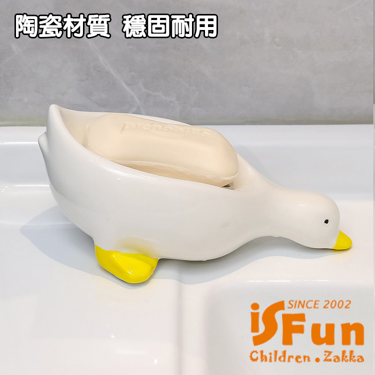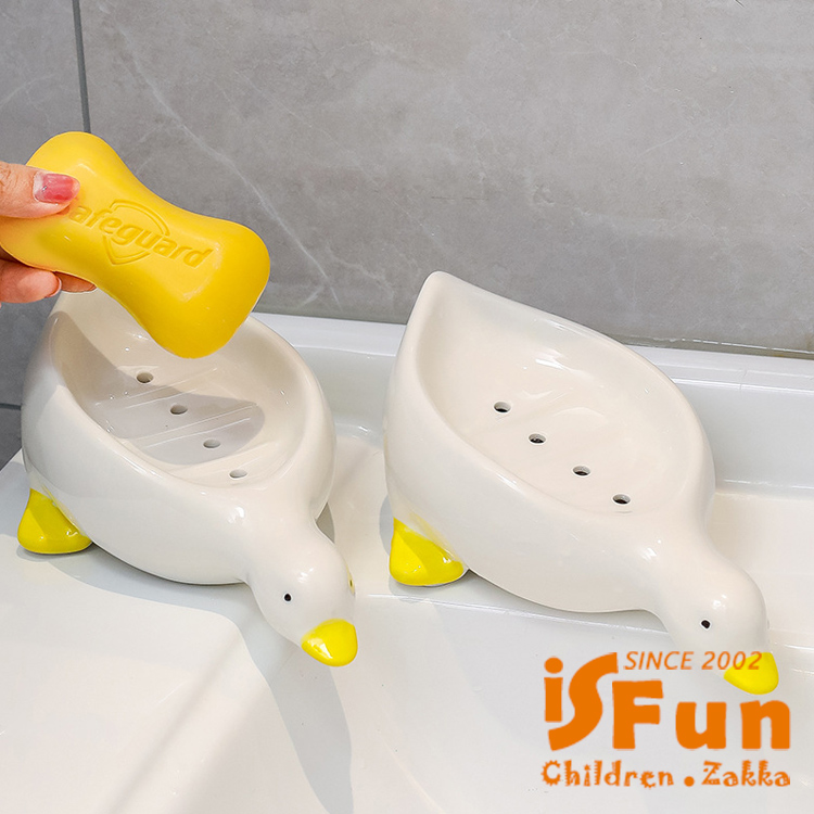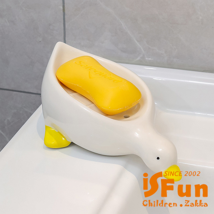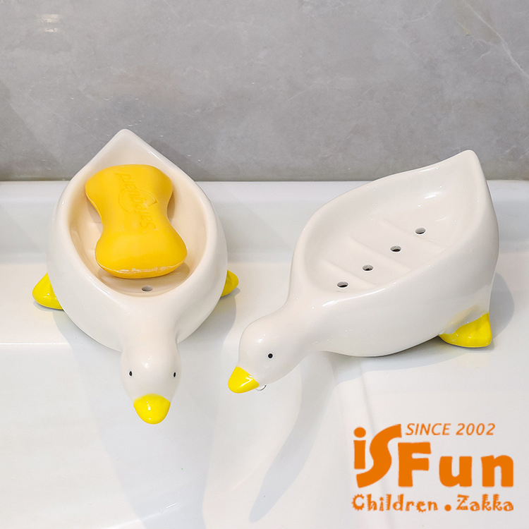 【iSFun】陶瓷收納 免打孔鴨鴨瀝水肥皂盒